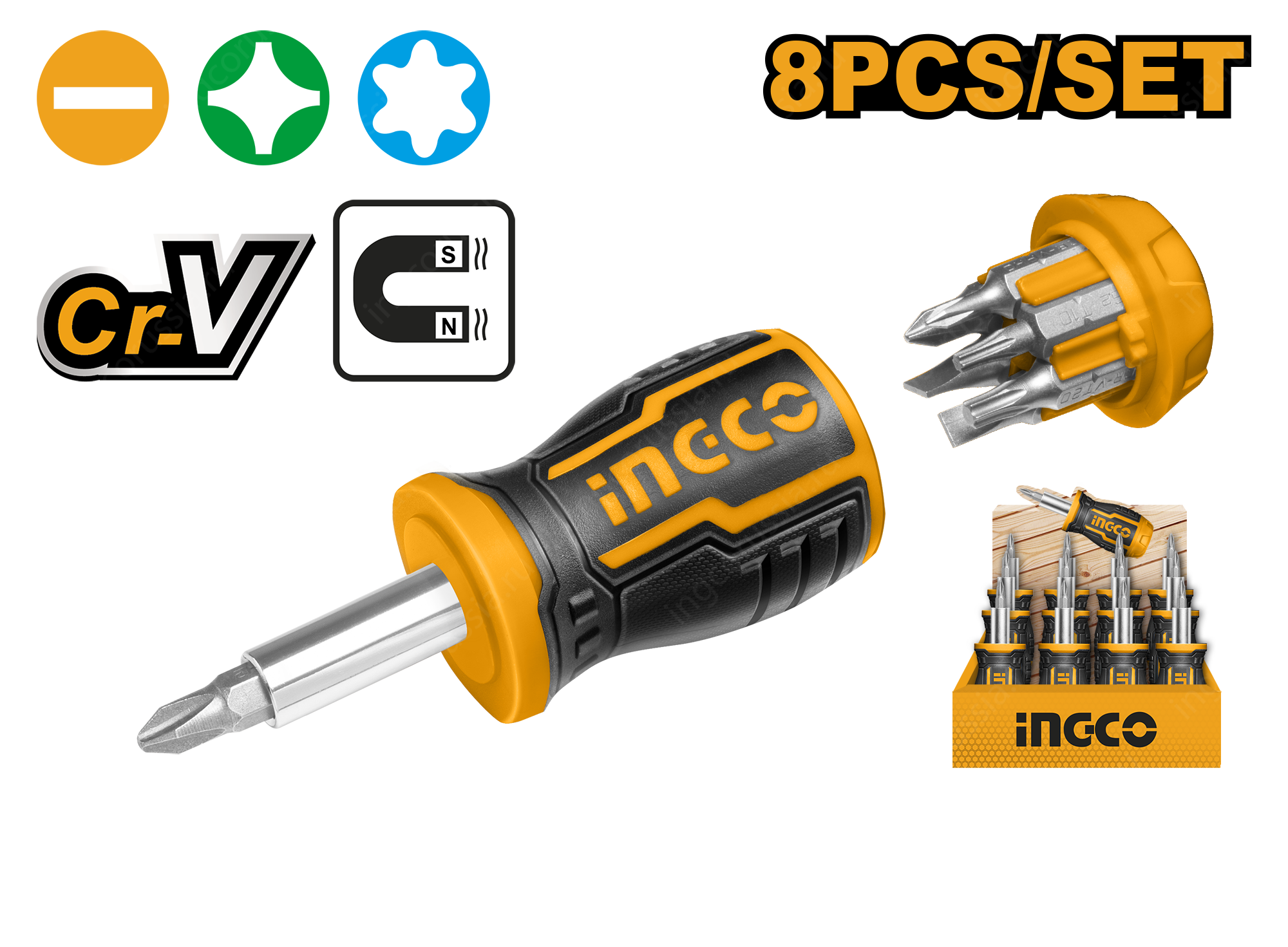 Отвертка короткая с битами 8 в 1