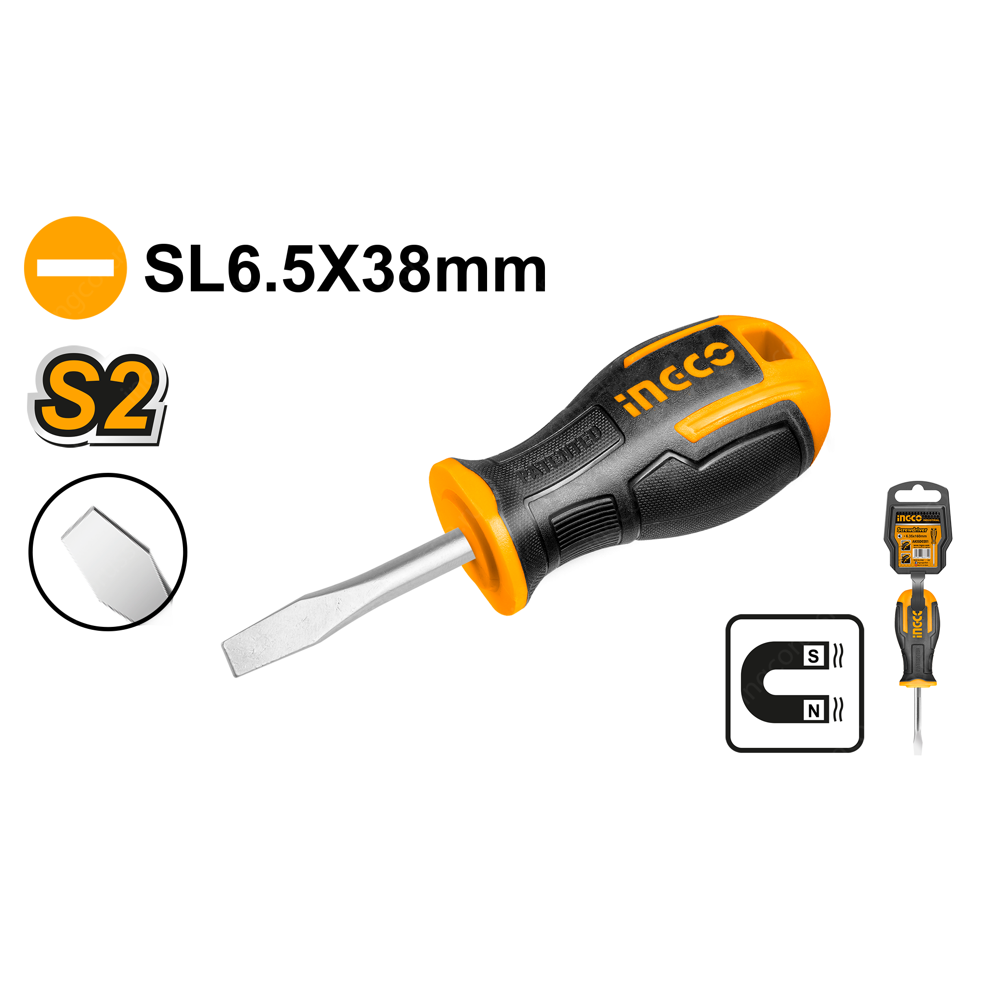 Отвертка плоская SL6.5 x 38 INGCO HS686038 INDUSTRIAL с прямым шлицем применяется для различных работ с крепежом.