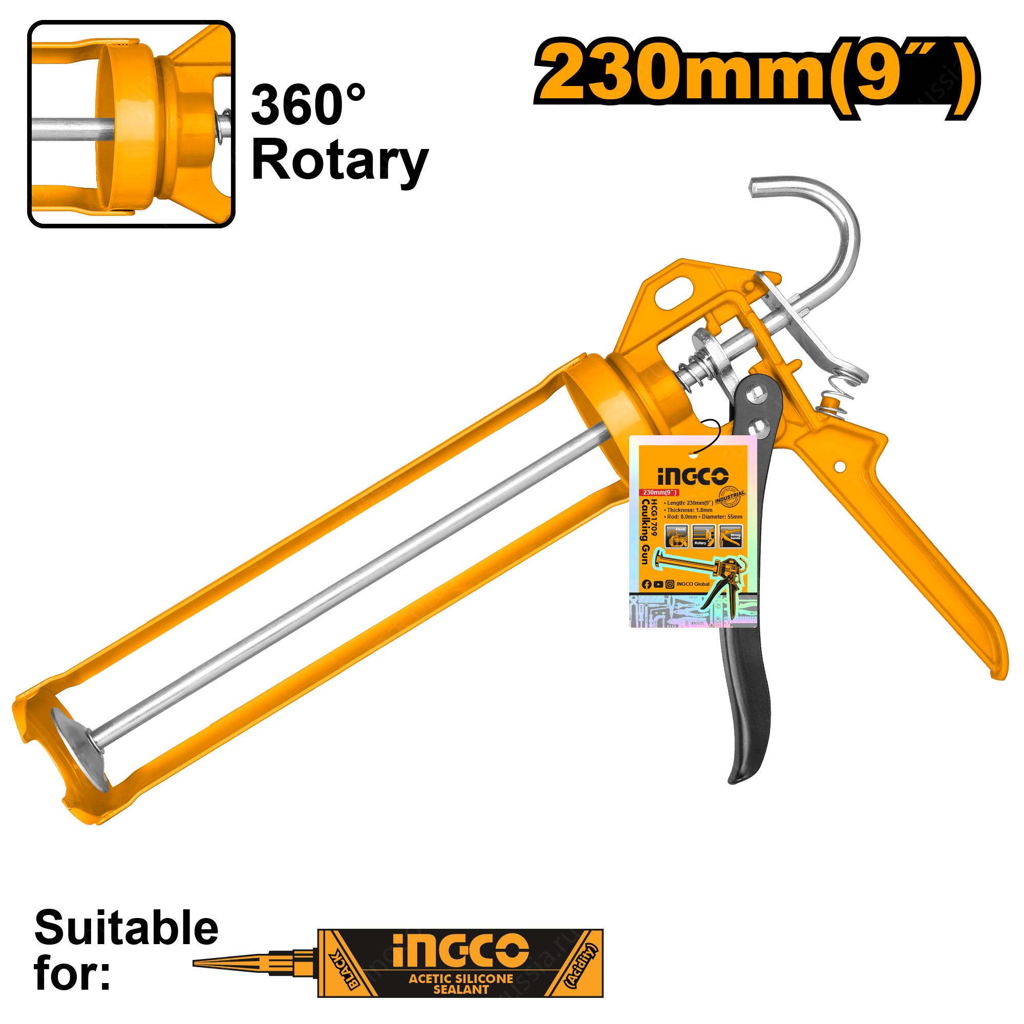 Пистолет для герметика INGCO HCG1709 используется для нанесения герметика при герметизации различных отверстий и швов.