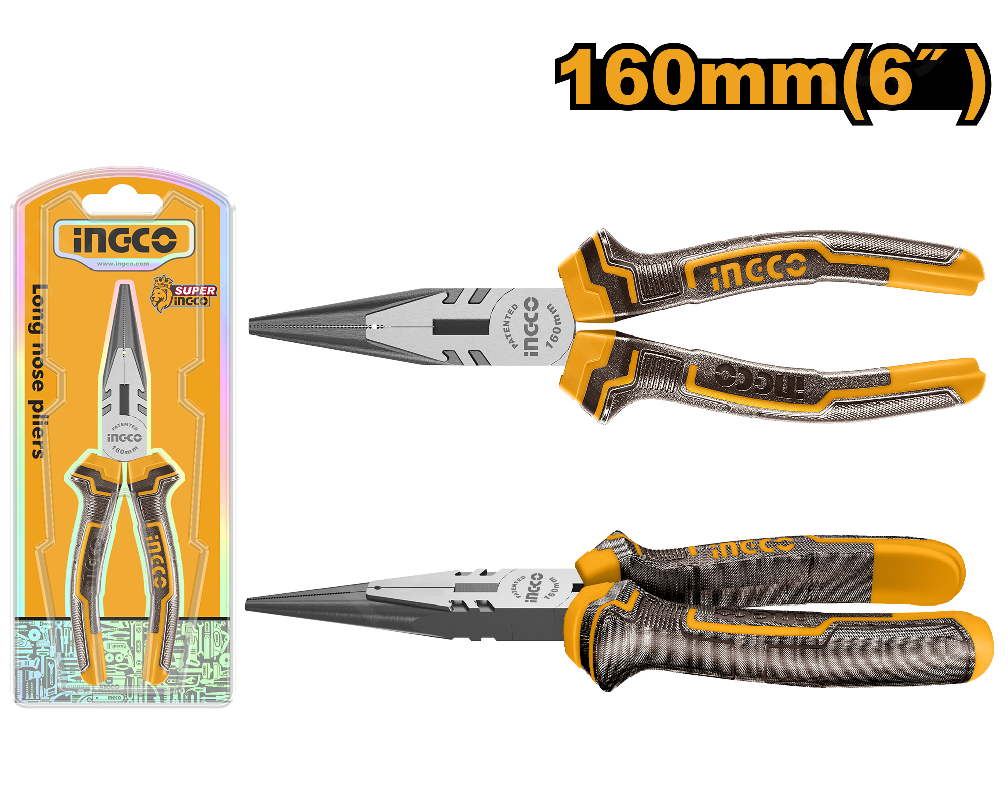 Длинногубцы 160 мм INGCO HLNP08168 оснащены удлиненными губками, которые изготовлены из высокопрочной стали и обработаны антикоррозийным маслом.