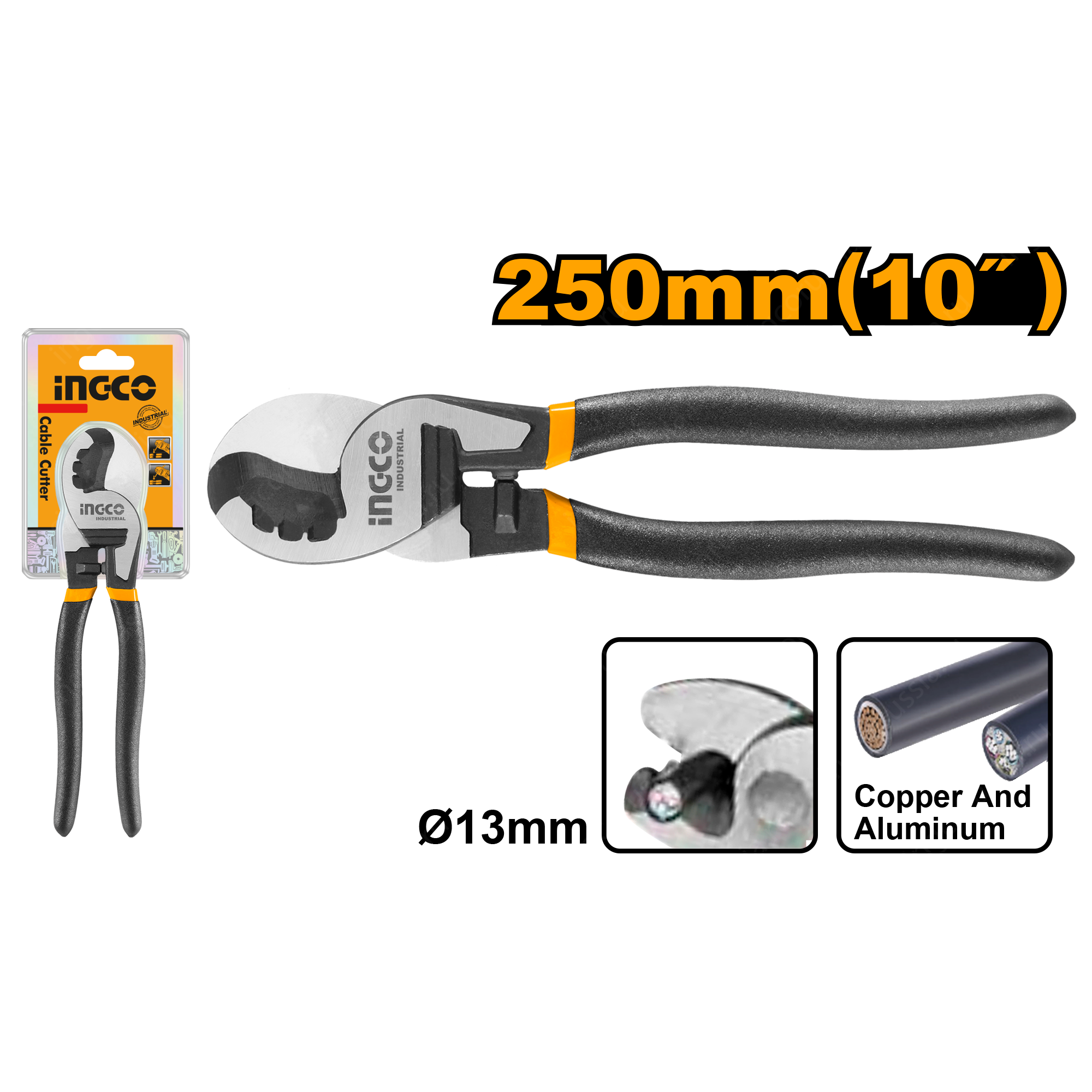 Кабелерез усиленный 250 мм INGCO HHCCB0210 INDUSTRIAL предназначены для перекусывания медного или алюминиевого кабеля диаметром до 11 мм.