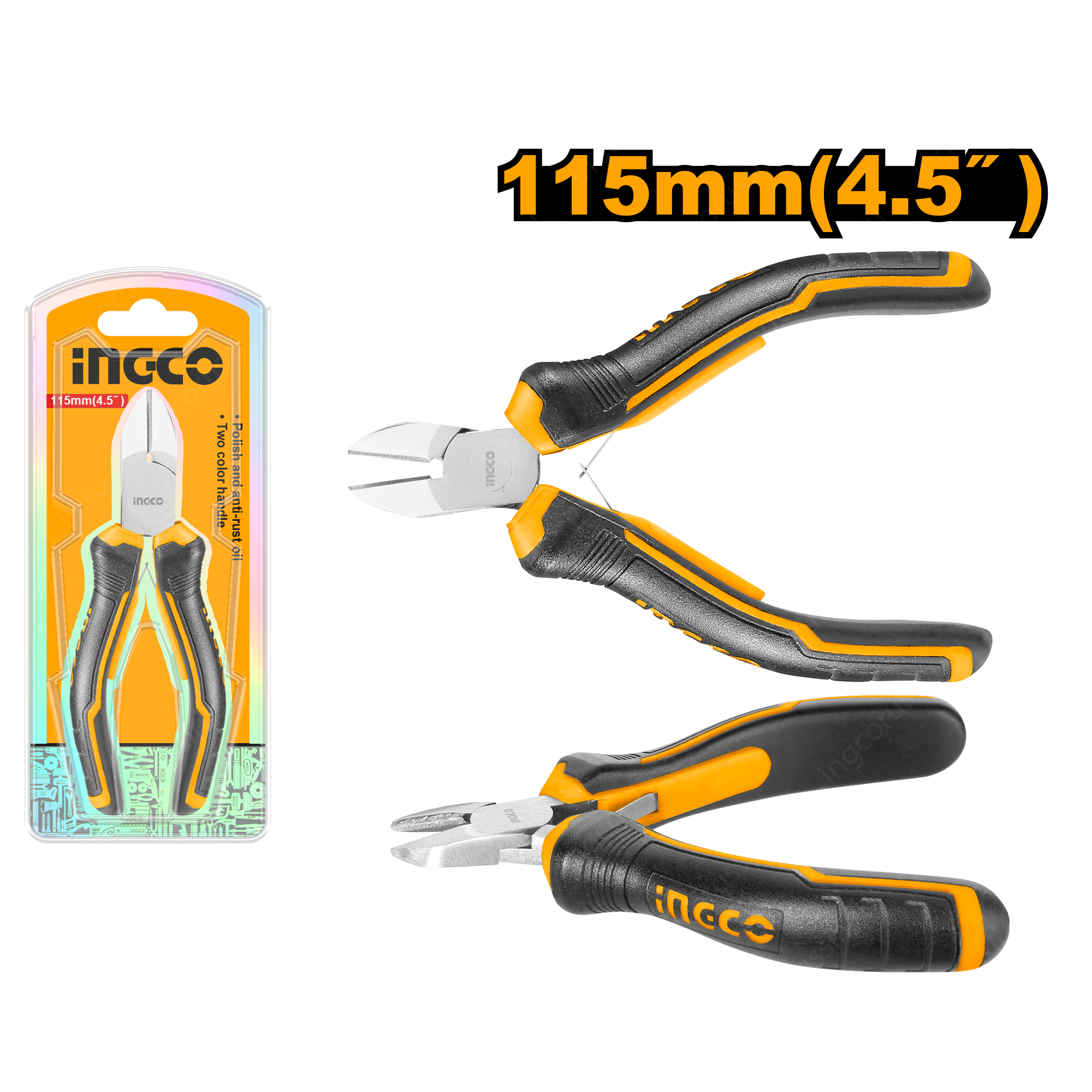 Бокорезы мини 115 мм. INGCO HMDCP08115 изготовлены из высококачественной хромованадиевой инструментальной стали. Двухкомпонентные эргономичные рукоятки плоскогубцев обеспечивают комфорт при работе и исключают выскальзывание инструмента из рук.