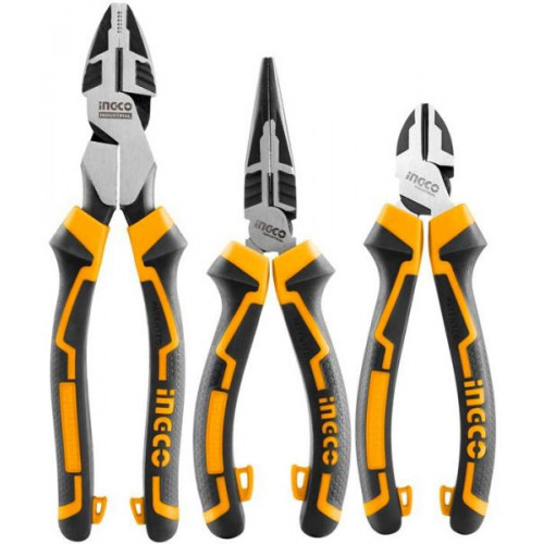 Набор шарнирно-губцевого инструмента усиленные 3 пред. INGCO HKHLPS2831 INDUSTRIAL - комплект шарнирно-губцевого инструмента, состоящий из трех предметов: комбинированных плоскогубцев, бокорезов и длинногубцев. Такой набор очень удобен для выполнения различных операций в области слесарно-монтажных работ.