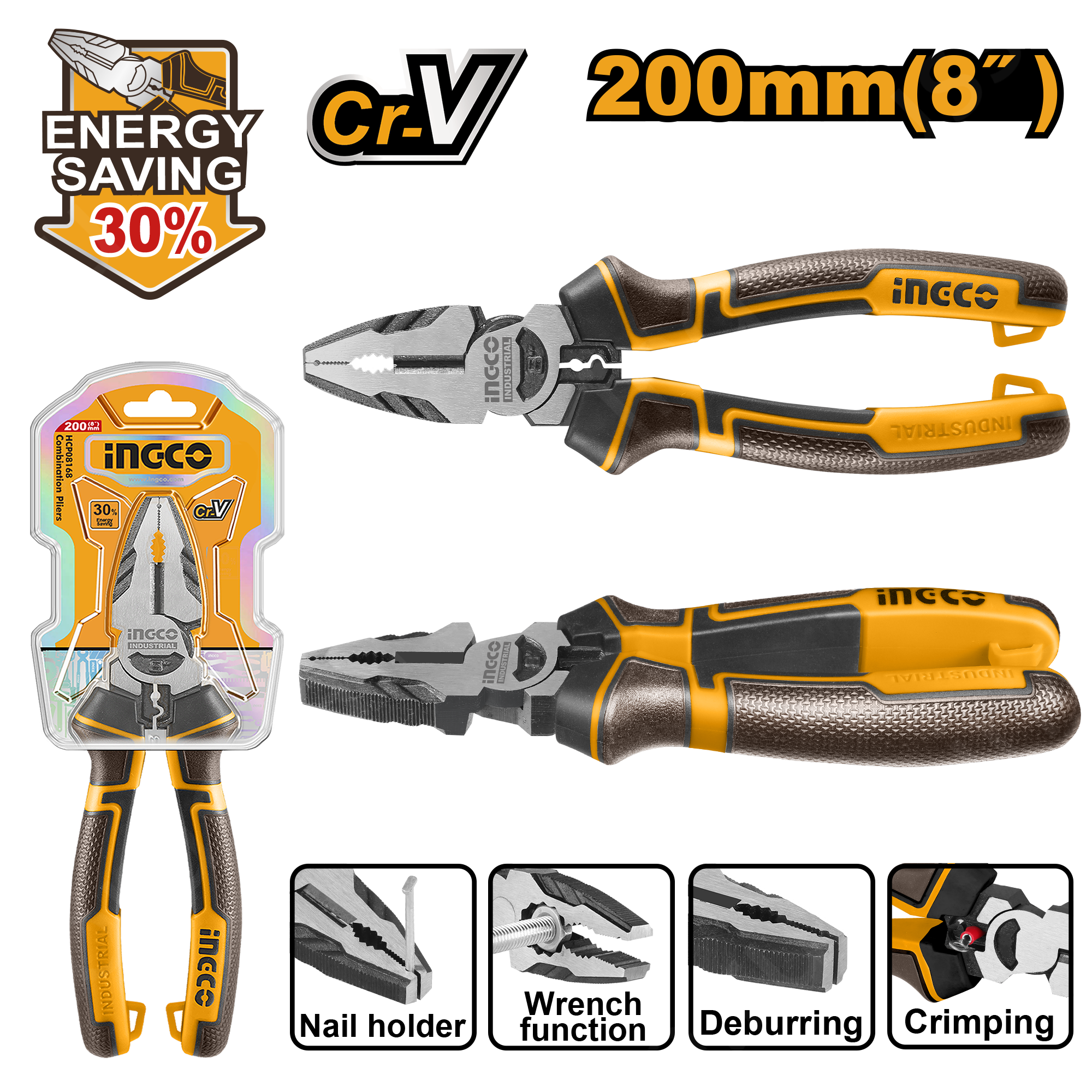 <p>Плоскогубцы комбинированные 200 мм INGCO HHCP28200 INDUSTRIAL применяются для захвата и удержания предметов различной формы, а также для перекусывания проводов или проволоки. </p> <p style="text-align: justify;"><span style="color: #000000;"><span style="color: #ff6600;"><span style="color: #000000;">Инструмент обладает</span><strong> усиленной конструкцией</strong></span> что увеличивает эфективность реза <strong><span style="color: #ff6600;">на 30% </span><span style="color: #ff6600;">с</span><span style="color: #ff6600;"> рычажной </span><span style="color: #ff6600;">передачей</span><span style="color: #ff6600;"> High leverage</span></strong></span> благодаря смещению шарнира к режущим кромкам.</p> <p style="text-align: justify;">Инструменты изготовлены из хромванадиевой <span style="color: #ff6600;"><strong>стали Cr-V</strong></span> характеризующаяся повышенной устойчивостью к коррозии и образованию ржавчины.</p> <p style="text-align: justify;">Двухкомпонентные <span