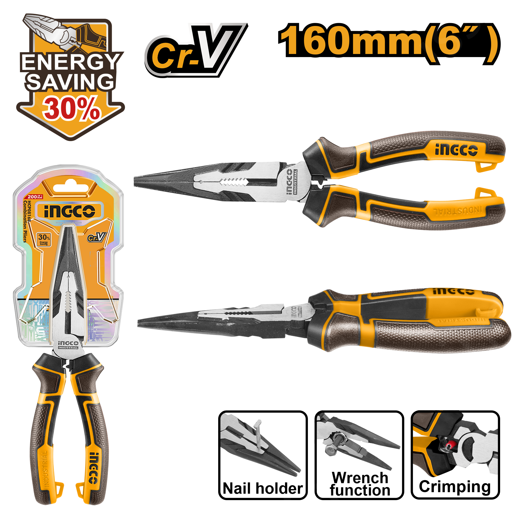 —Тонкогубцы 160 мм INGCO HHLNP28160 INDUSTRIAL