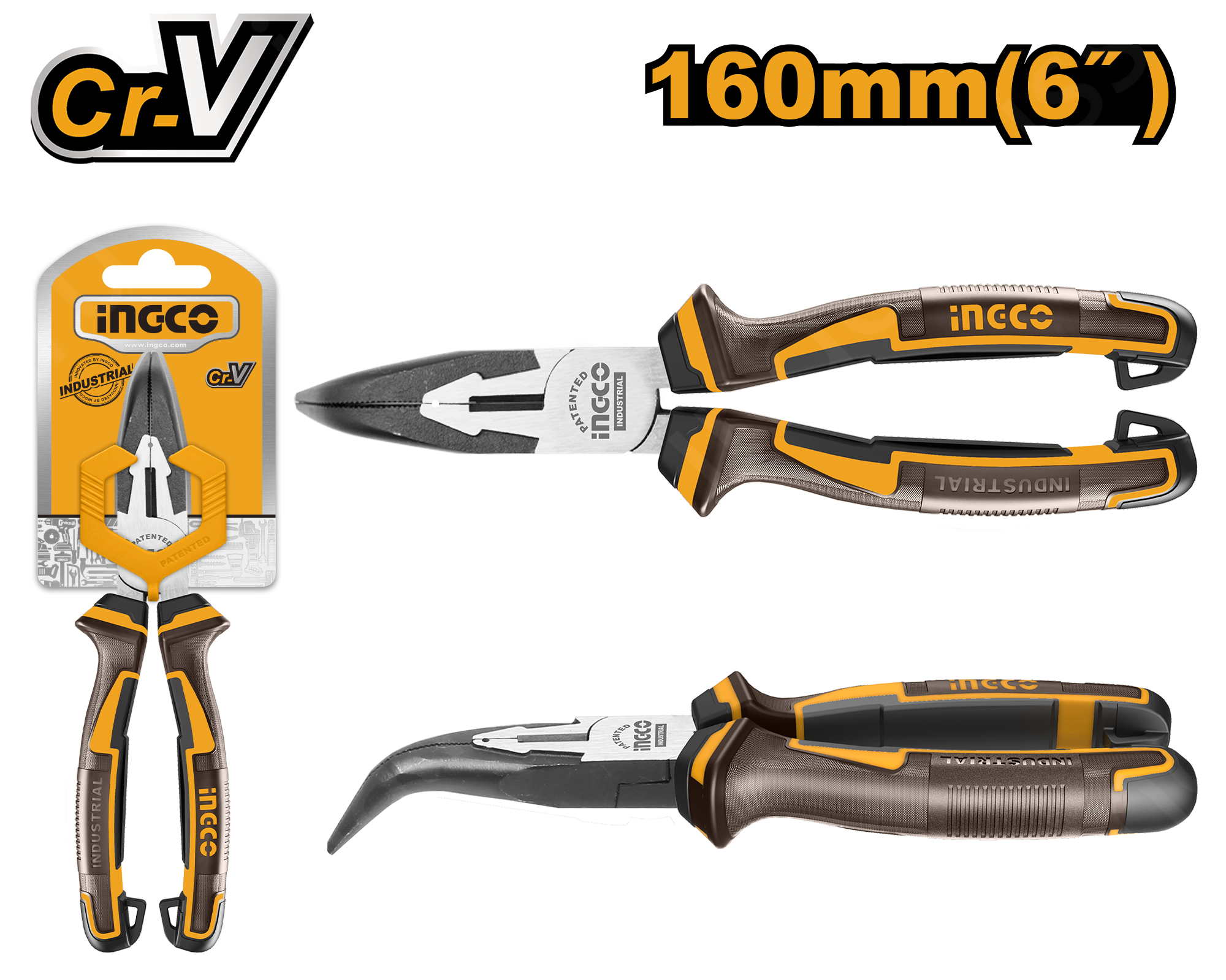 Тонкогубцы изогнутые 160 мм INGCO HBNP28168 INDUSTRIAL