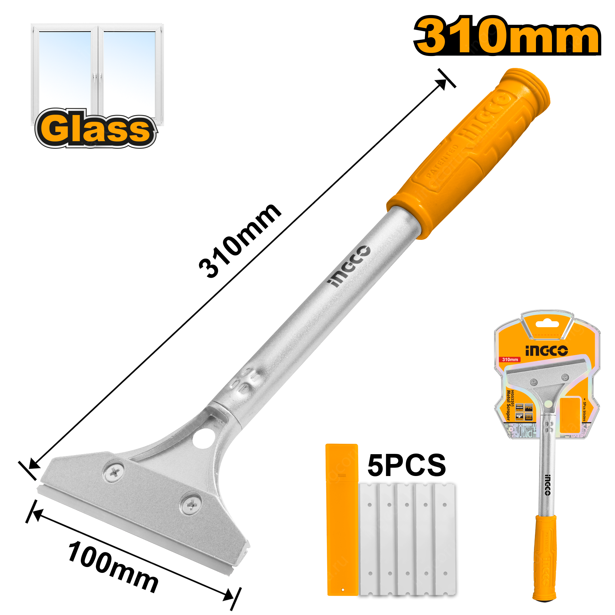 Скребок металлический 310 мм INGCO HGS3201 применяется для удаления загрязнений с плоских поверхностей.