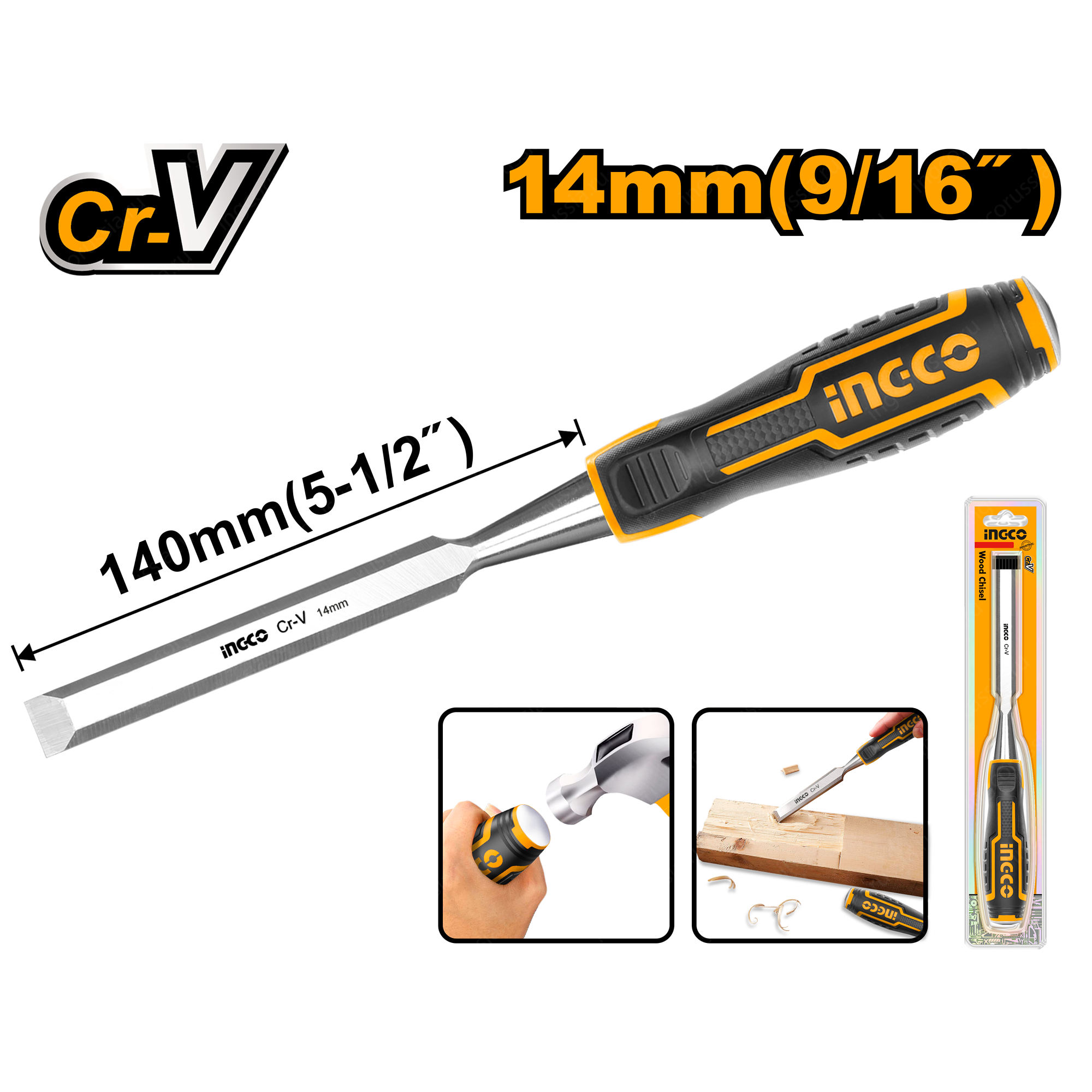 <p>Стамеска INGCO HWC0814 INDUSTRIAL ручной инструмент предназначенный для строгания или выборки углублений в древесине. Рабочая часть выполнена из хромованадиевой стали для длительной эксплуатации. Удобная прорезиненная рукоять надежно сидит в руке, обеспечивая комфортность работы.</p> <p>Ширина инструмента - 14 мм, длина - 140 мм. </p> <p><strong>Вес: Брутто - 0,22 кг.</strong></p> <p><strong>Параметры упакованного товара: Длина-33 см., Ширина-7 см., Высота-4 см.<sup><sub> </sub></sup></strong></p>