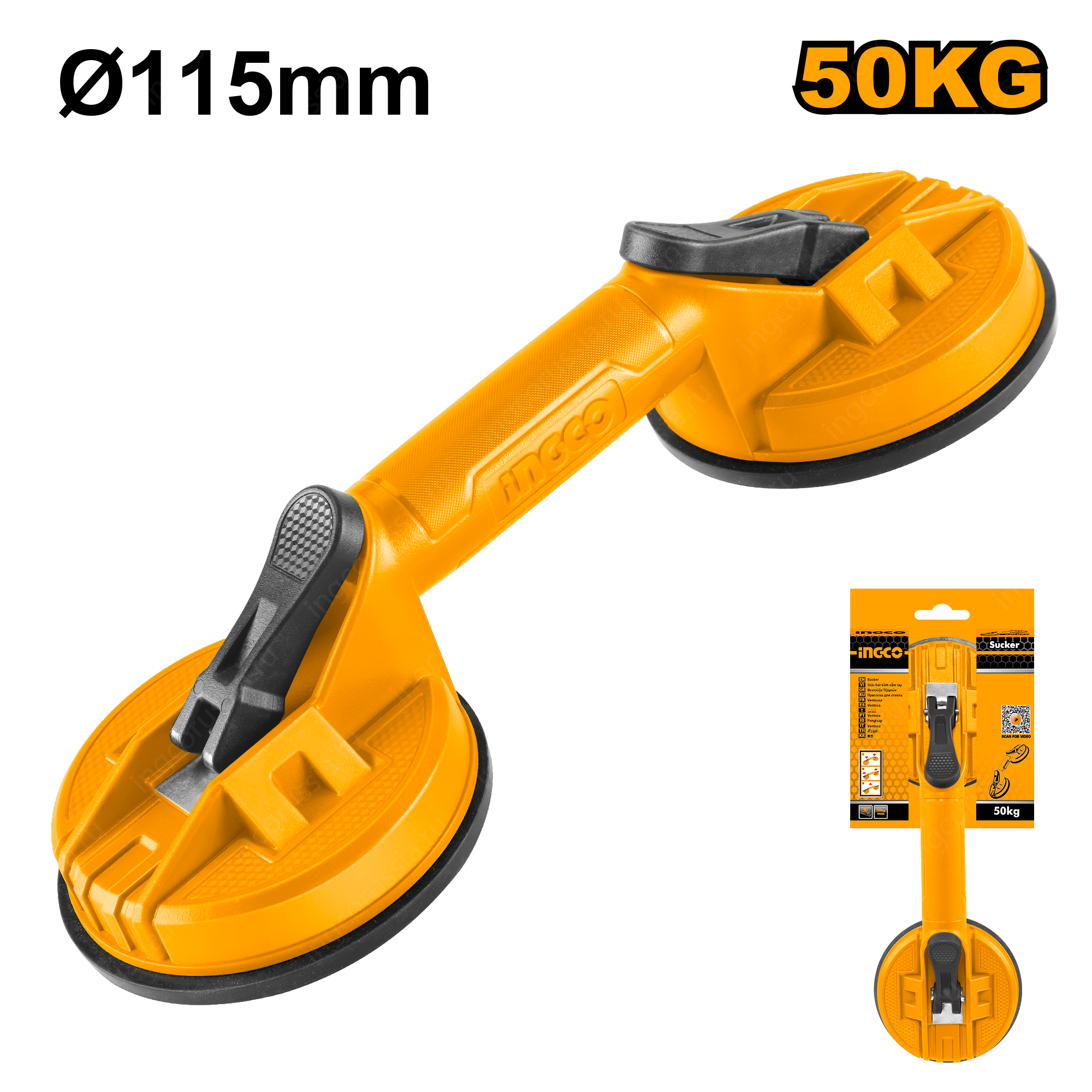 Стеклодомкрат двойной 50 кг INGCO HSU025001 может быть использована для перемещения стекла, плитки, пластика, другого листового материала и даже камня с гладкой поверхностью. Корпус выполнен из ударопрочного пластика ABS.