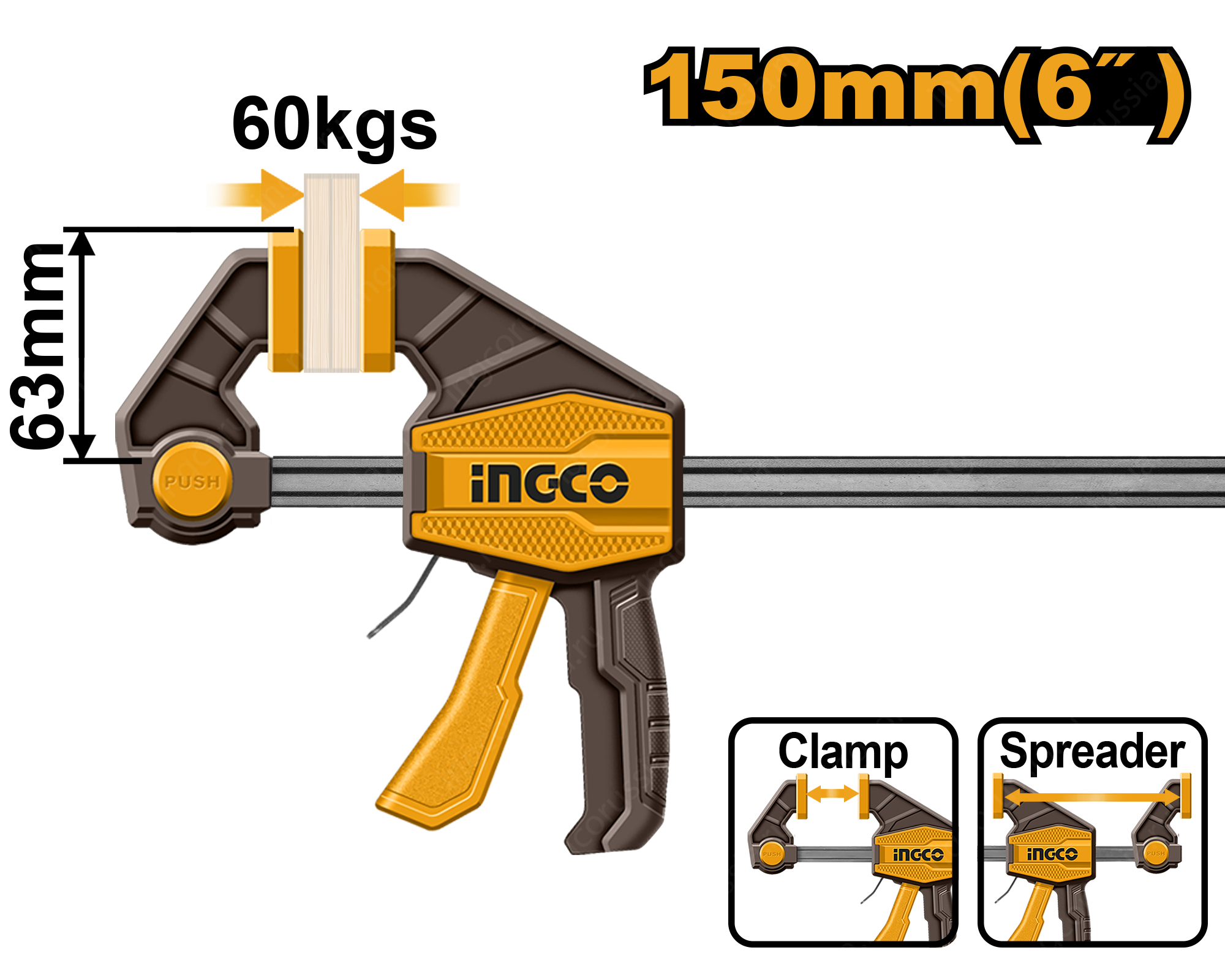 Быстрозажимная струбцина 63х150 мм INGCO HQBC01601 INDUSTRIAL удобное приспособление для фиксации заготовок.