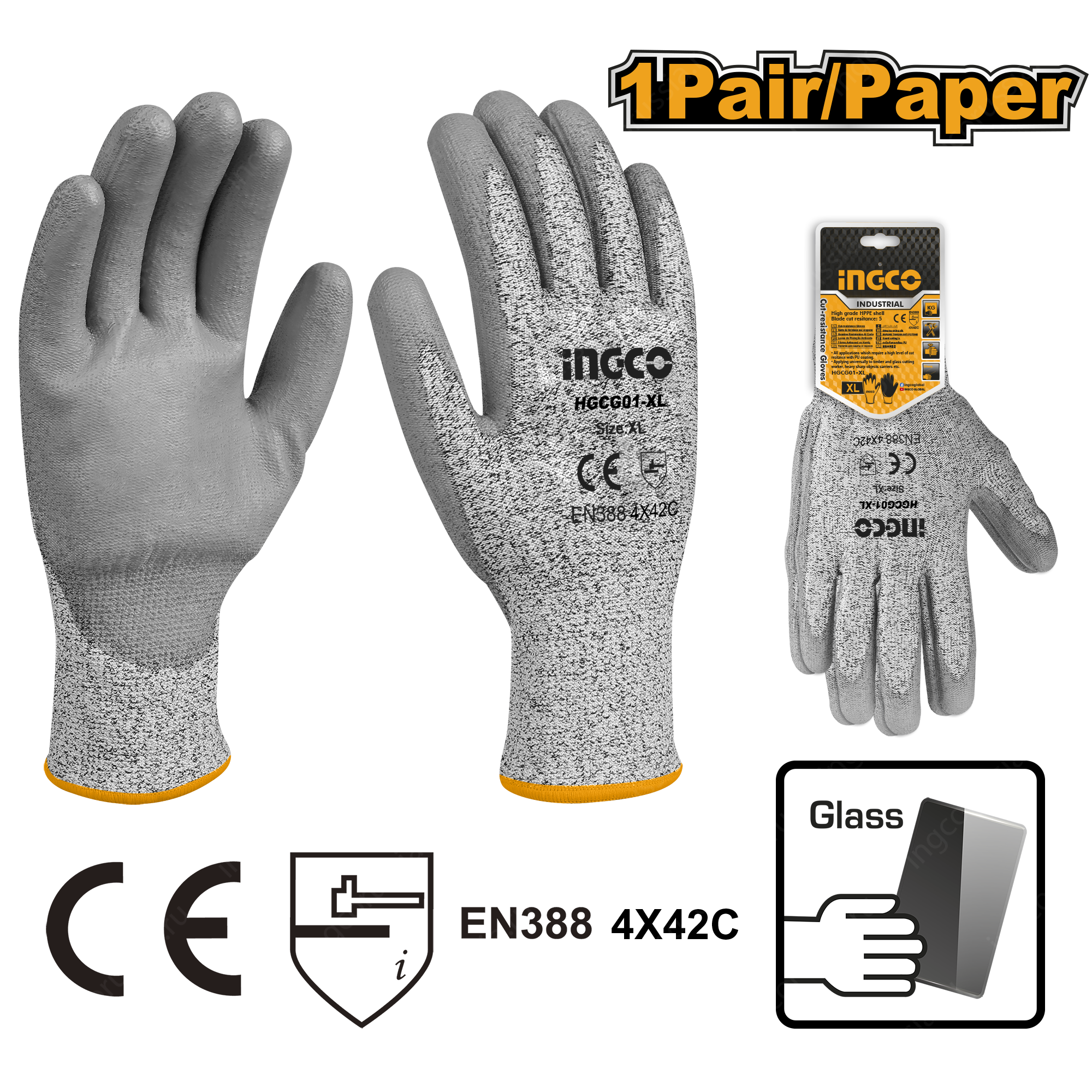 Перчатки для защиты от порезов с манжетой антистатические XL INGCO HGCG01-XL INDUSTRIAL используется при резки древесины и стекла, для переноски тяжелых острых предметов и т. д.