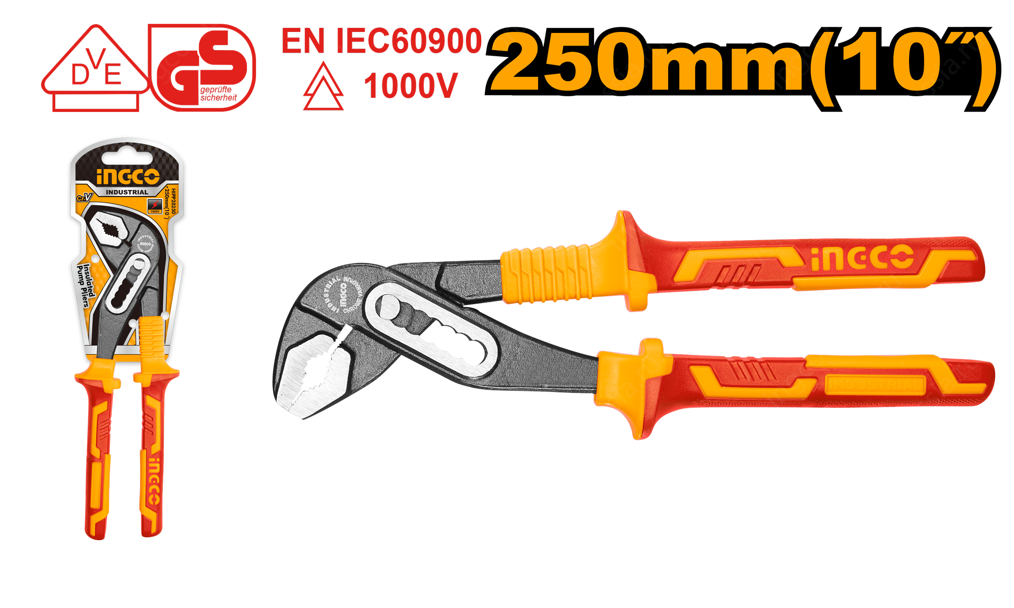 Клещи переставные диэлектрические 250 мм INGCO HIPP28250 INDUSTRIAL предназначены для эксплуатации в сфере промышленности и энергетики для выполнения высоковольтных электромонтажных работ и для различных работ с деталями круглого и шестигранного профиля.