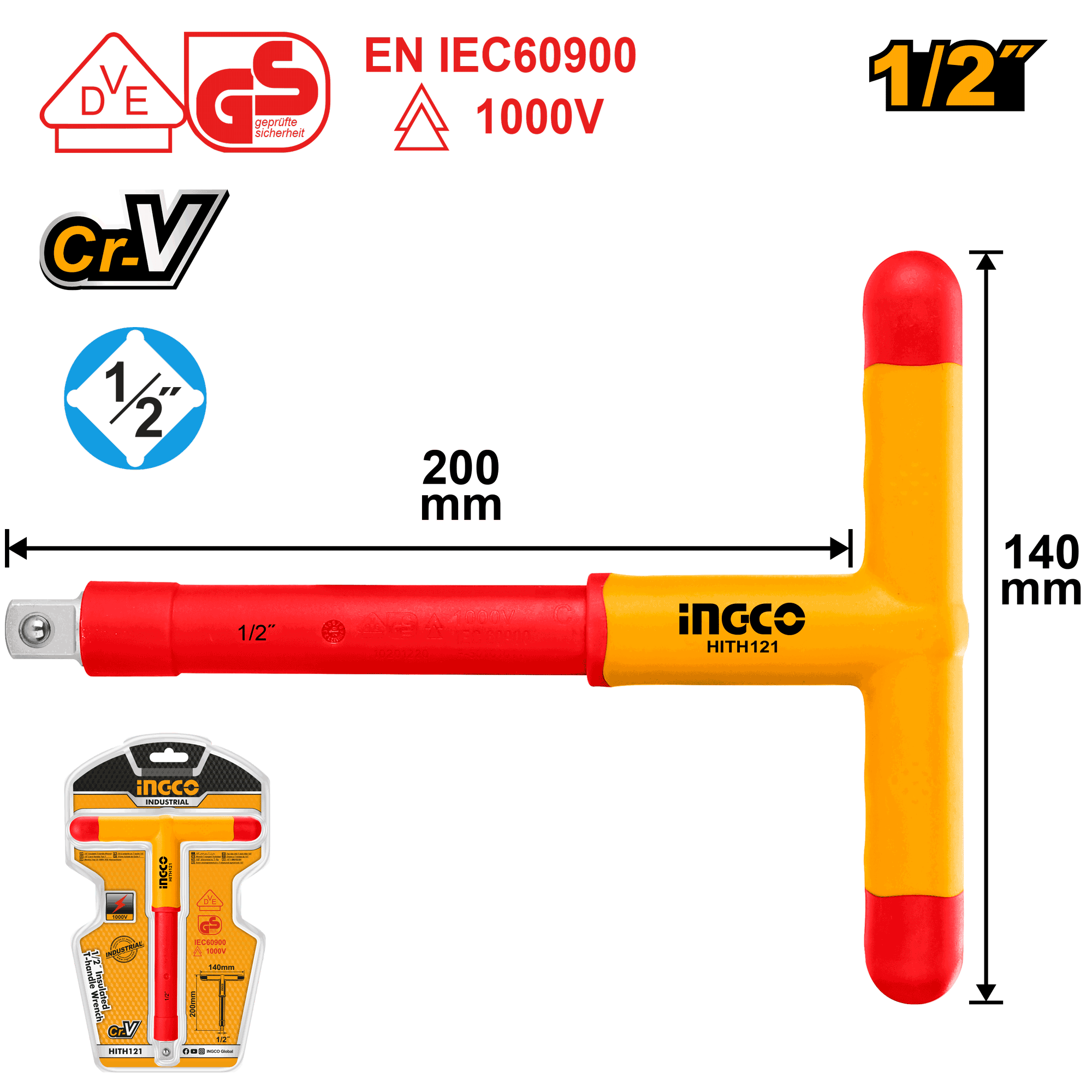 Вороток Т-образный изолированный 1000В 12 INGCO HITH121 предназначены для работ в электроустановках напряжением до 1000В