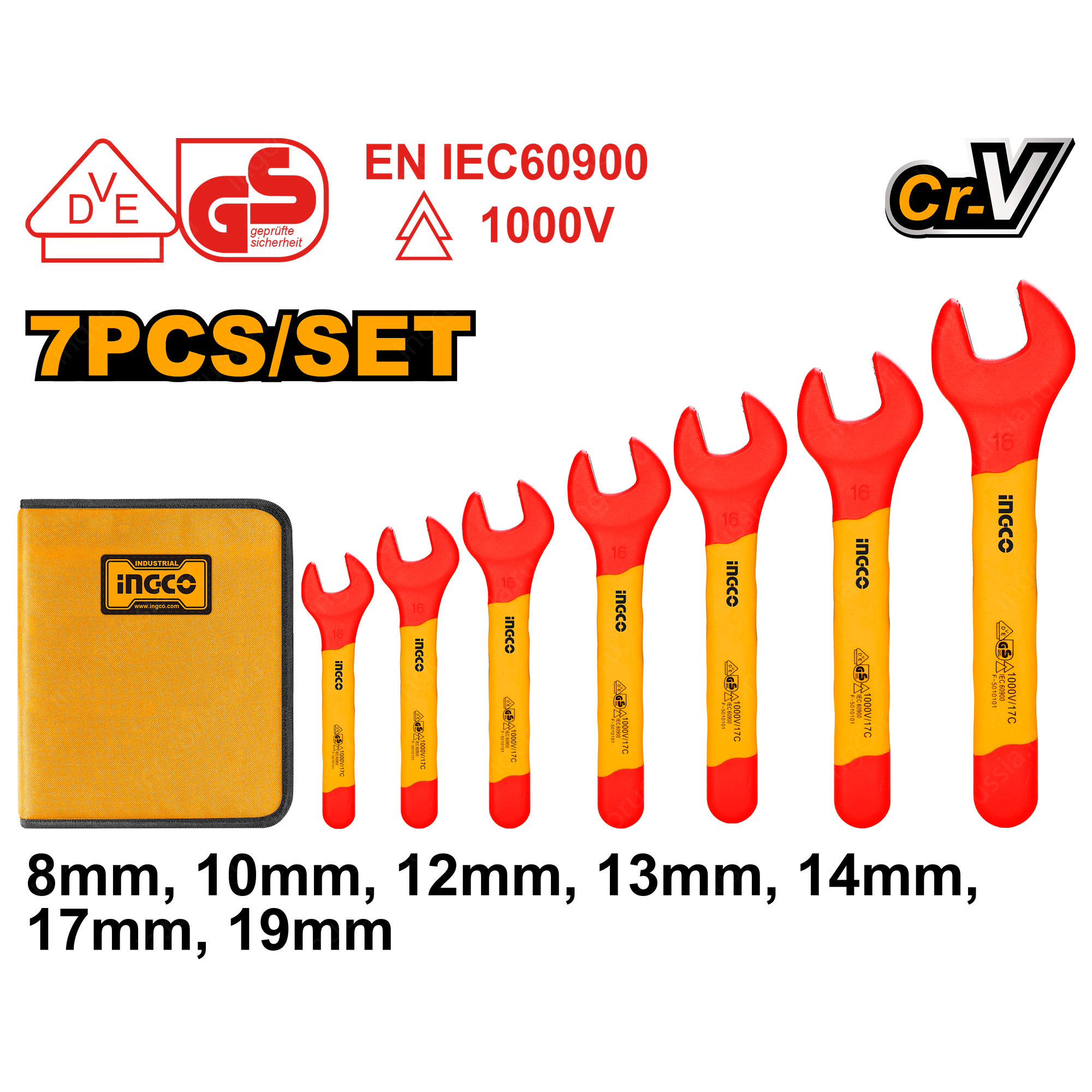 Набор изолированных гаечных односторонних ключей 7шт. INGCO HKISPA0701 предназначен для электромонтажных работ под напряжением до 1000 В.