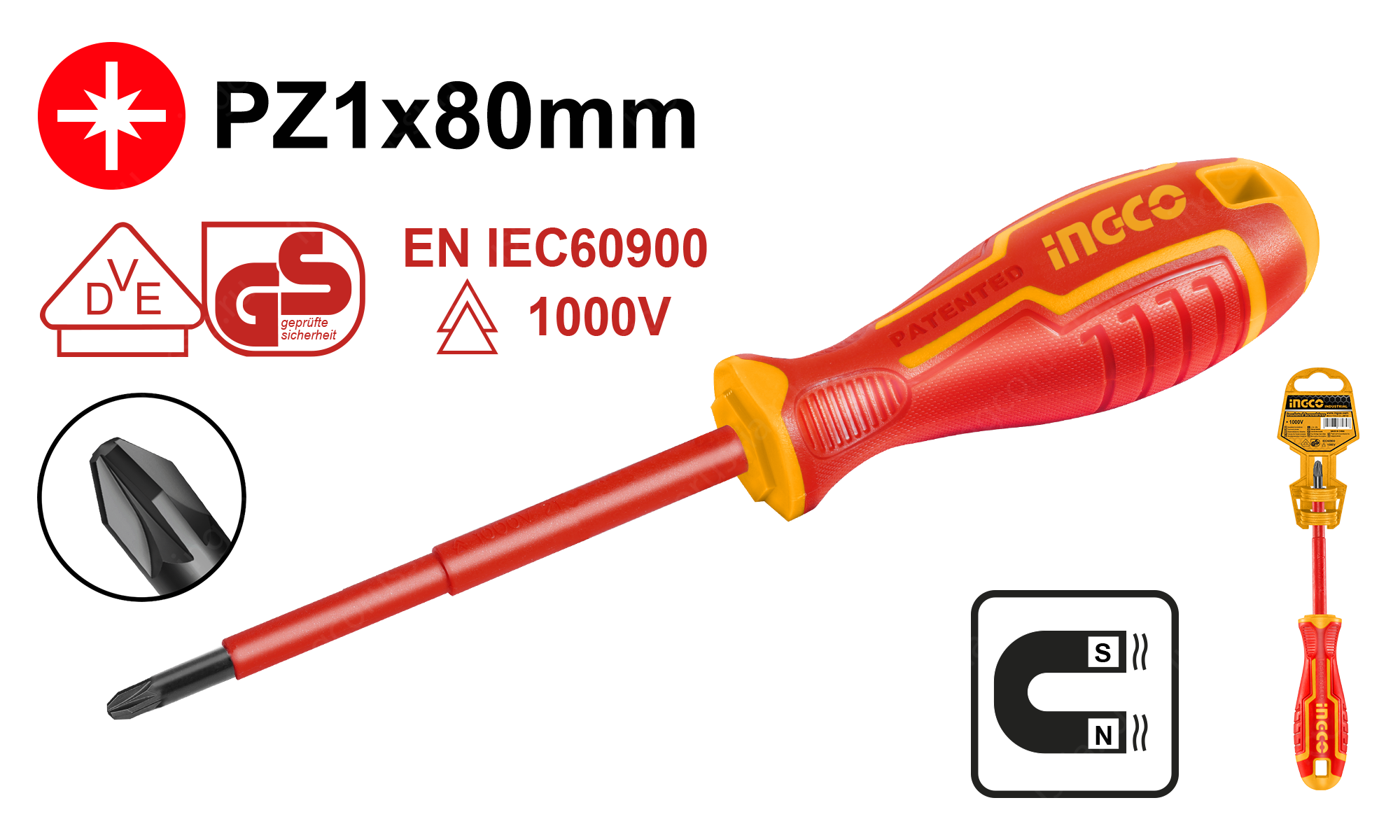 Отвертка диэлектрическая крестовая PZ1x80 мм INGCO HISD81PZ180 INDUSTRIAL применяется для различных работ с крепежом.