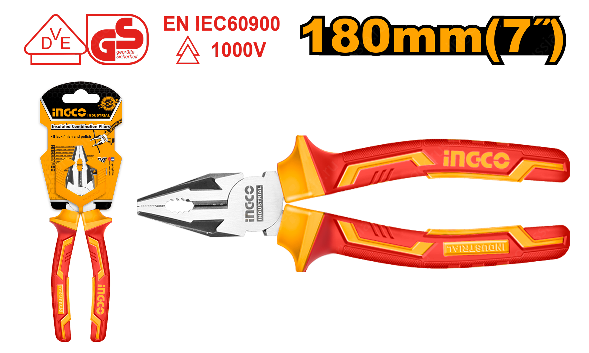 <p>Диэлектрические плоскогубцы 180 мм INGCO HICP28188 INDUSTRIAL - специализированный ручной инструмент, предназначенный для работы под высоким напряжением (<strong><span style="color: #ff0000;">до 1000 В переменного тока</span></strong>). Применяются для захвата и удержания предметов различной формы, а также для перекусывания проводов или проволоки. </p> <p>Шарнирно-губцевый инструмент изготовлен из <span style="color: #ff6600;"><strong>стали Cr-V</strong></span>, потому что она обладает отличными свойствами, такими как жесткость, прочность, и устойчивость к износу и коррозии.</p> <p>Двухкомпонентные <span style="color: #000000;">рифленые</span> рукоятки плоскогубцев, имеют диэлектрическое покрытие <span style="color: #ff0000;"><strong>до 1000В</strong></span>, и не скользит в руке.</p> <ul> <li>Линейка - <span style="color: #ff6600;"><strong>INDUSTRIAL</strong><span style="color: #000000;">;</span></span></li> <li>Длина инструмента - 180 мм;</li> <li>Черная отделка и полир