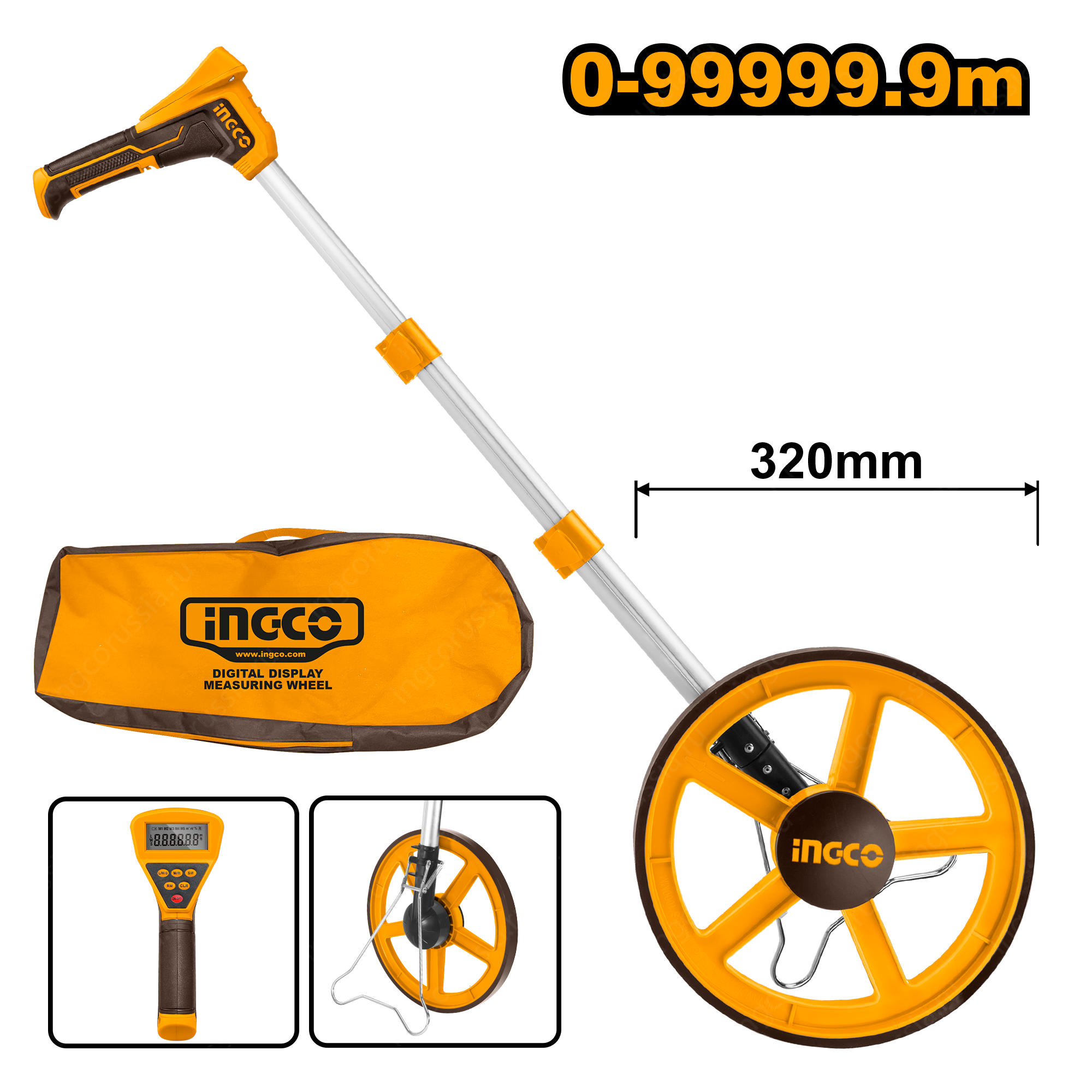 <p><span>Измерительное колесо INGCO HDMW23 INDUSTRIAL </span><span>широко используется в дорожном строительстве и при разметке строительных площадок. </span></p> <p><span>Благодаря электронному счетчику измеряет расстояние </span><span style="color: #ff6600;"><strong>с высокой точностью</strong></span><span> - погрешность составляет не более 0.5%.</span></p> <p>Большой диаметр колеса 320 мм.,<span> </span><span style="color: #ff6600;"><strong>обеспечивает надежное сцепление с любой поверхностью</strong>.</span></p> <p>Складная конструкция штанги позволяет без проблем перевозить инструмент в автомобиле или общественном транспорте.</p> <p>Полученные данные отображаются на ЖК-экране с подсветкой, что способствует<span> </span><span style="color: #ff6600;"><strong>удобному считыванию данных</strong>.</span></p> <ul> <li>Измеряет расстояние с высокой точностью - погрешность составляет менее 5%;</li> <li>Размер в сложенном виде 700х320</li> <li>Размер в разложенном состоянии 980х320 </