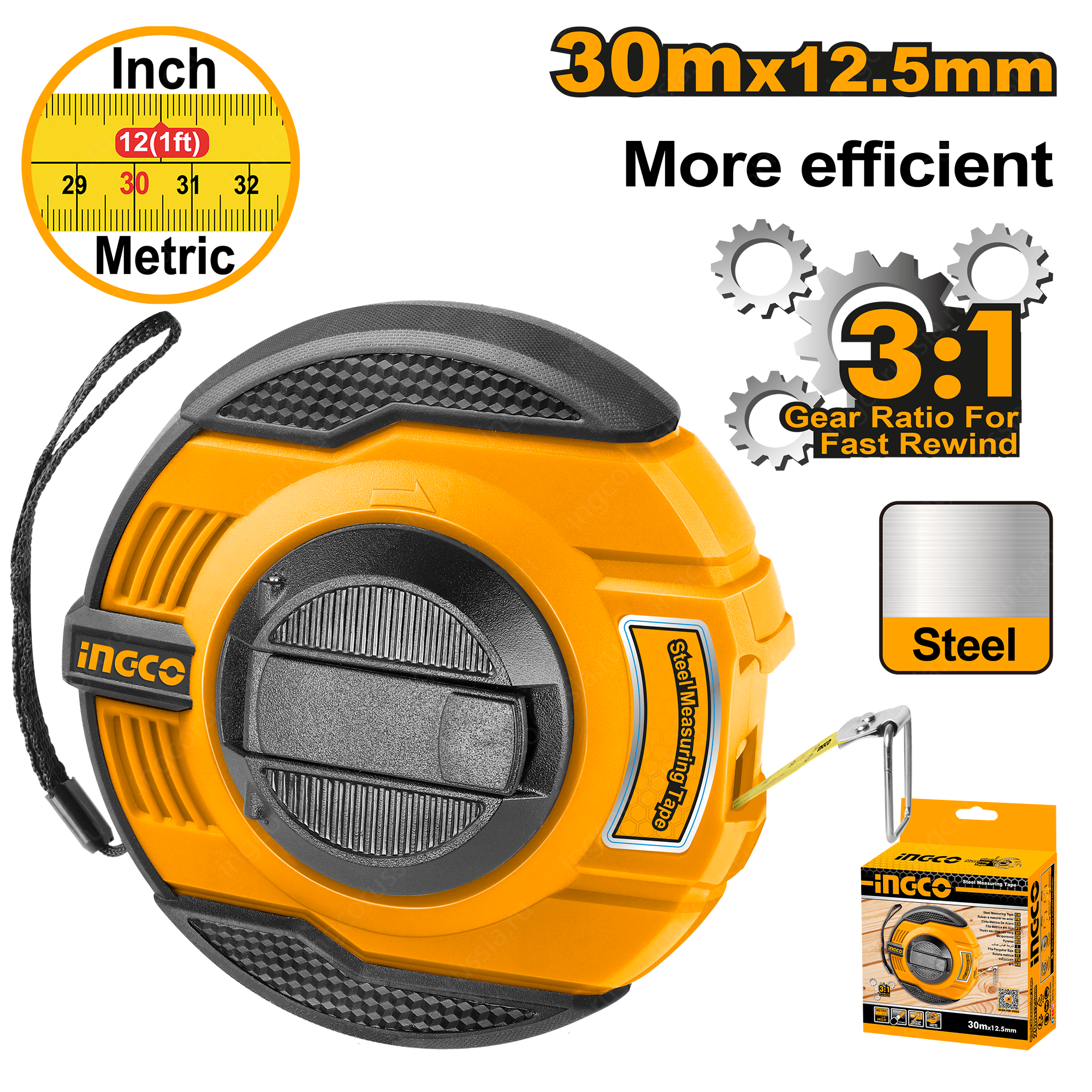 Мерная лента стальная INGCO HSMT8430 мм используется для проведения измерений в больших помещениях или на улице.