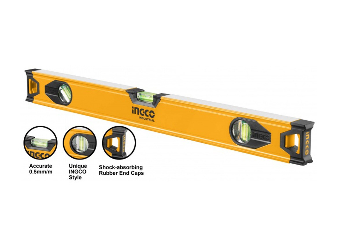 Строительный алюминиевый уровень INGCO HSL08050 INDUSTRIAL оснащен 3 глазками. Конструкция выполнена из прочного алюминиевого сплава толщиной 1,5 мм и имеет анодированное покрытие, благодаря чему срок службы инструмента выше. V-образной слот для измерения объектов с круглой поверхностью. Специальные встроенные заглушки по бокам защищают уровень от повреждения.