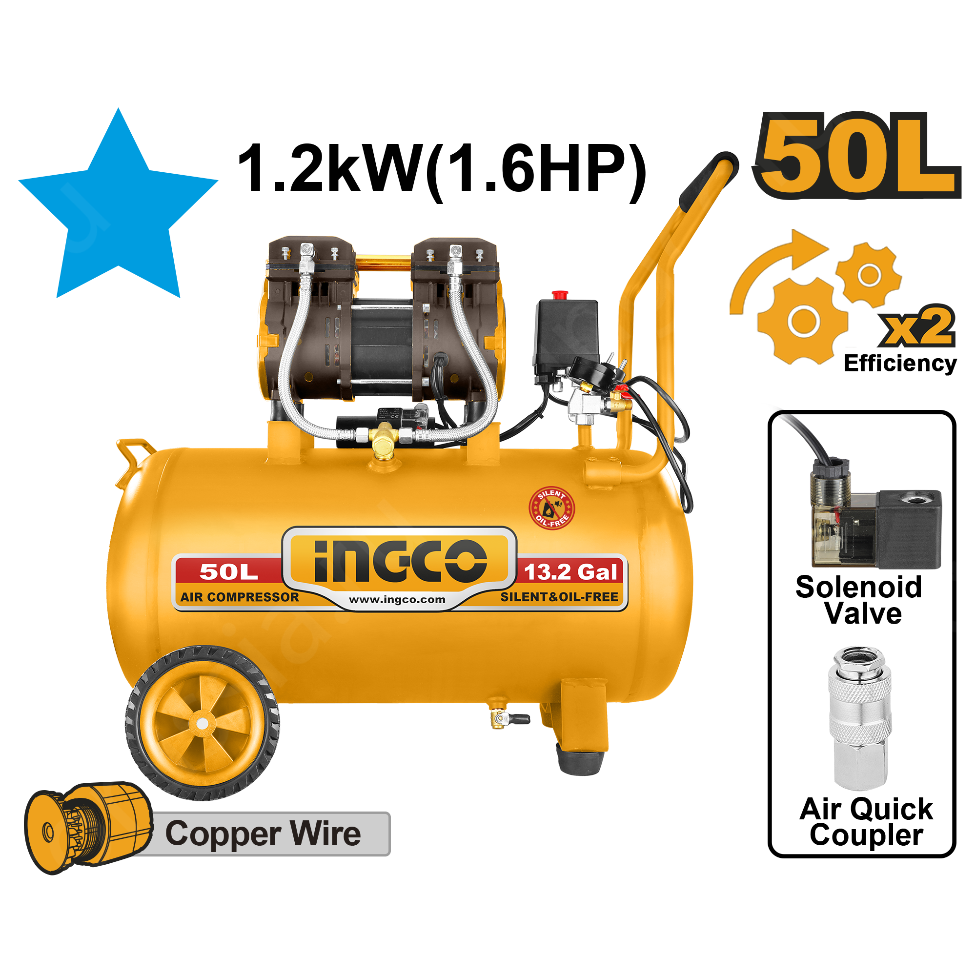 Безмасляный компрессор воздушный INGCO ACS112501 служит для нагнетания сжатого воздуха в пневматические инструменты.