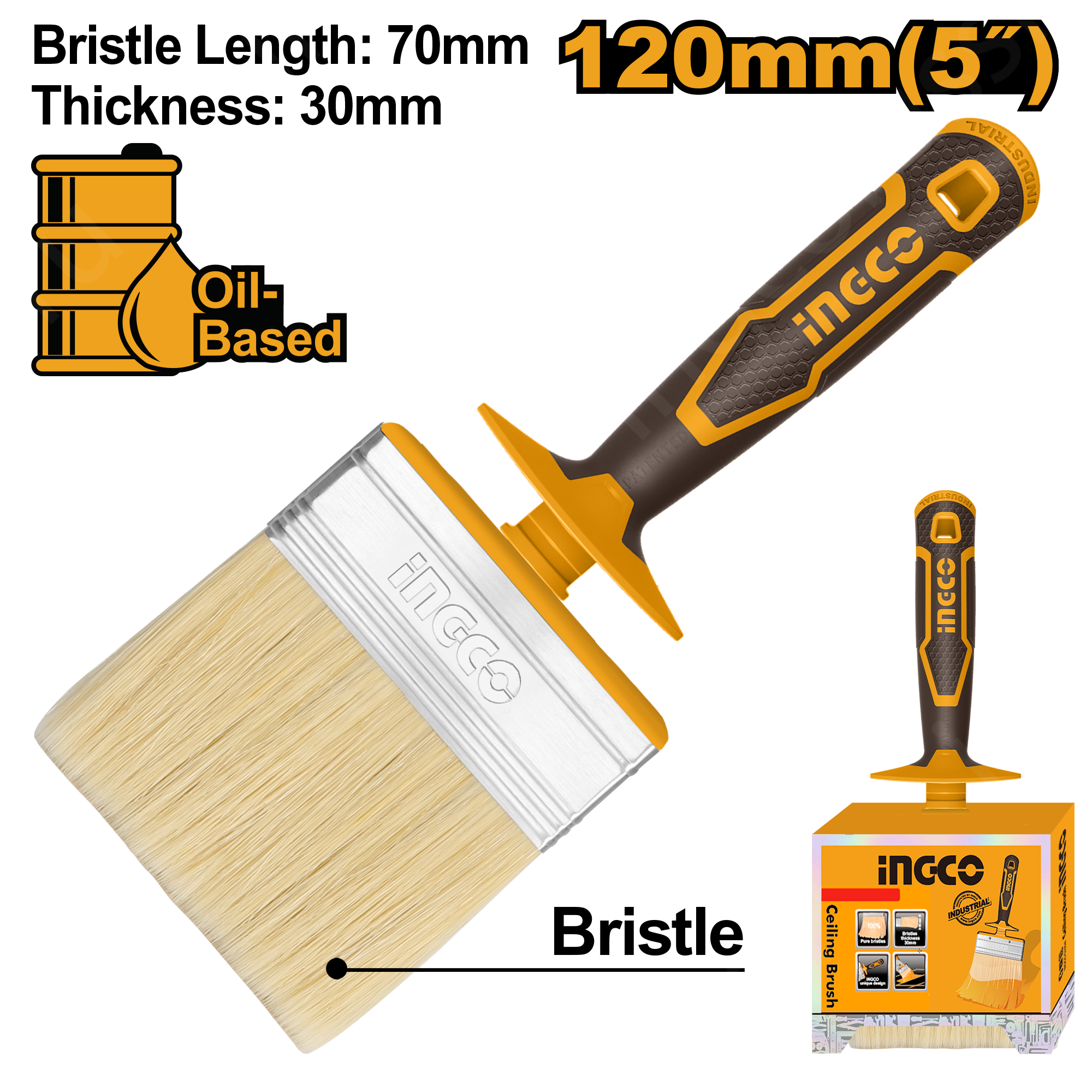 Кисть макловица INGCO HCLB120308 INDUSTRIAL предназначена для работы с лакокрасочными покрытиями на масляной основе. Металлический бандаж надежно фиксирует щетину и не дает ей рассыпаться. Удобная пластиковая рукоятка обеспечивает комфортность работы. Длина щетинок: 70 мм. Толщина кисти: 28 мм. Ширина кисти: 120 мм.