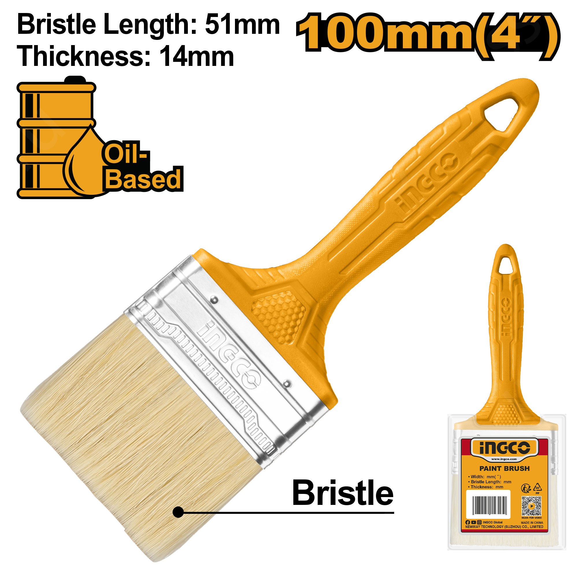 Кисть малярная флейцевая 100х51х12 мм INGCO CHPTB78604 представляет собой ручной малярный инструмент, который предназначен для работы с лакокрасочными покрытиями на масляной основе.