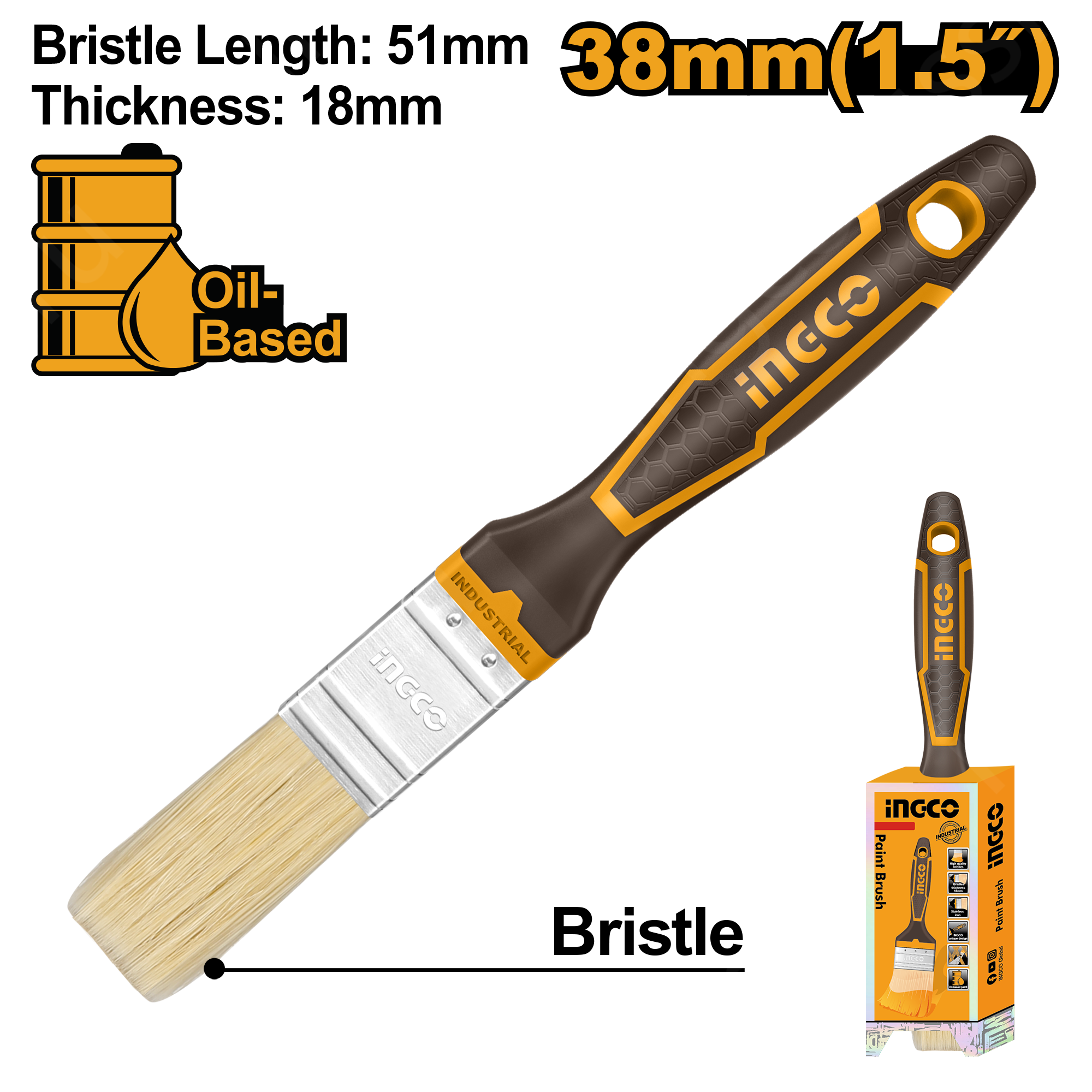 Кисть малярная флейцевая INGCO CHPTB8715 INDUSTRIAL представляет собой ручной малярный инструмент, который предназначен для работы с лакокрасочными покрытиями на масляной основе. Металлический бандаж надежно фиксирует щетину и не дает ей рассыпаться. Удобная пластиковая рукоятка обеспечивает комфортность работы. Длина щетинок: 51 мм. Толщина кисти: 18 мм. Ширина кисти: 38 мм.