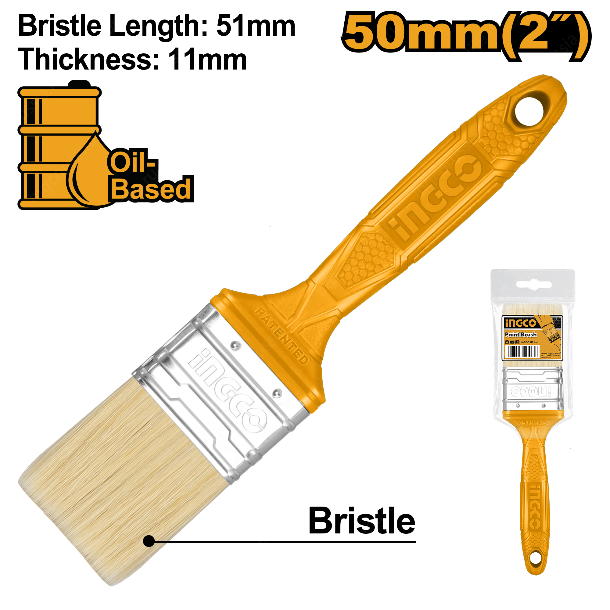 Кисть малярная флейцевая INGCO CHPTB68702 представляет собой ручной малярный инструмент, который предназначен для работы с лакокрасочными покрытиями на масляной основе. Металлический бандаж надежно фиксирует щетину и не дает ей рассыпаться. Длина щетинок: 51 мм. Толщина кисти: 11 мм. Ширина кисти: 50 мм.