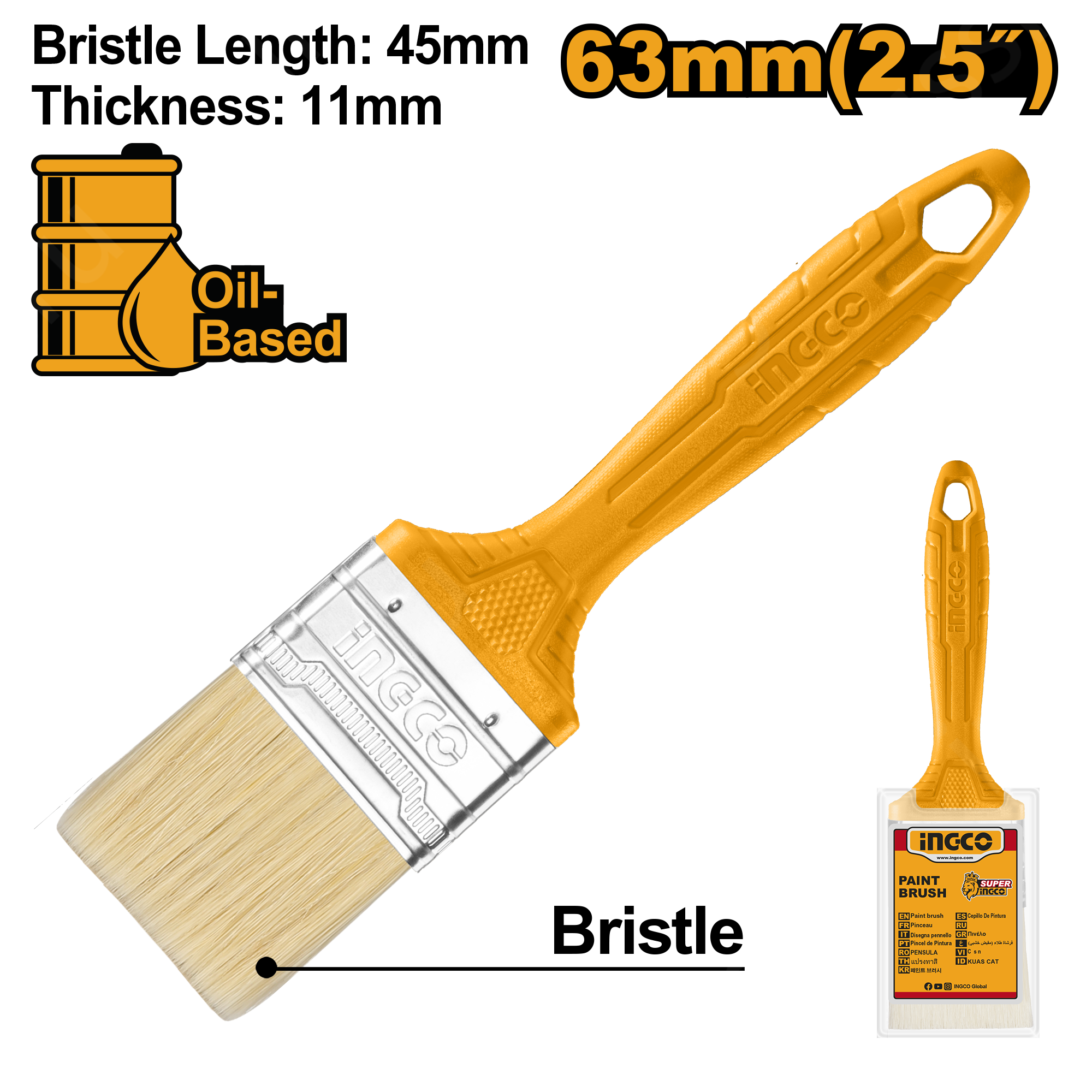 Кисть малярная флейцевая 63х45х11 мм INGCO CHPTB78625 представляет собой ручной малярный инструмент, который предназначен для работы с лакокрасочными покрытиями на масляной основе.