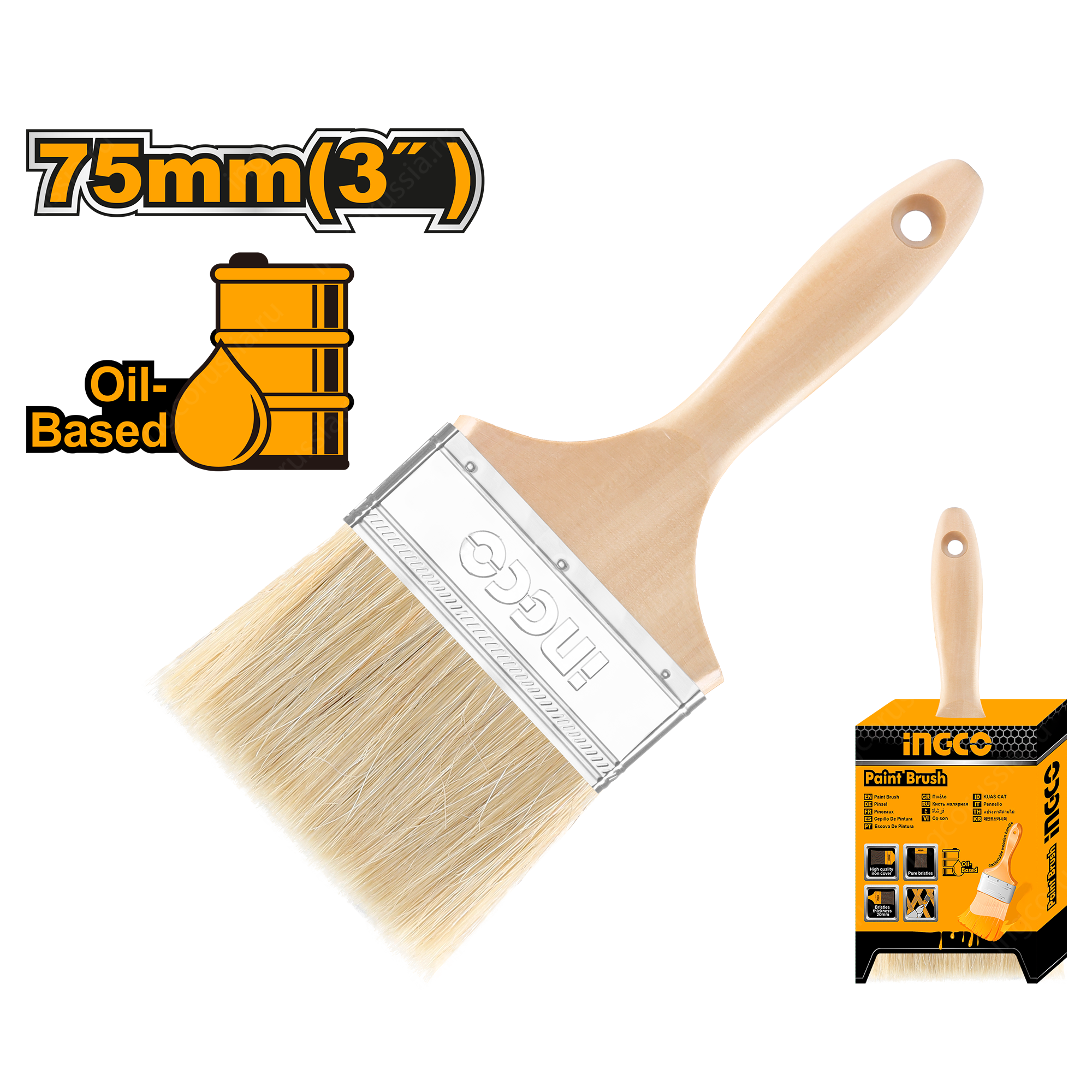 Кисть малярная флейцевая INGCO CHPTB0503 представляет собой ручной малярный инструмент с деревянной рукояткой, который предназначен для работы с лакокрасочными покрытиями на масляной основе. Металлический бандаж надежно фиксирует щетину и не дает ей рассыпаться. Длина щетинок: 64 мм. Толщина кисти: 18 мм. Ширина кисти: 76 мм.