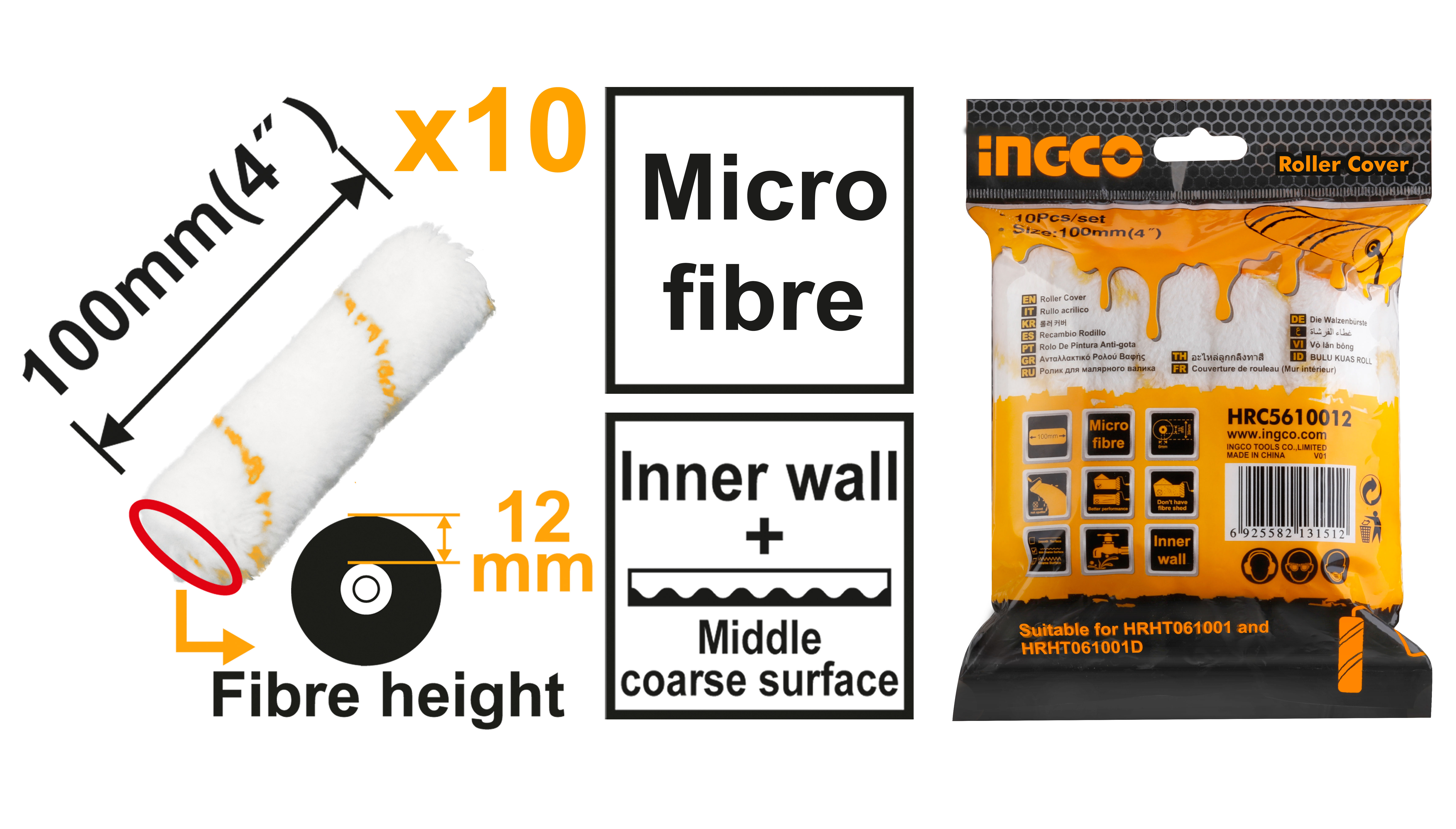 Набор роликов для валика INGCO HRC5610012 содержит 10 мини роликов из микрофибры для валиков моделей HRHT061001D и HRHT061001. Высота ворса - 12 мм. Ширина валика - 100 мм. Для отделки внутренних стен.