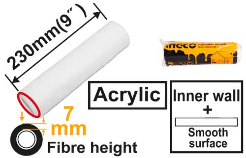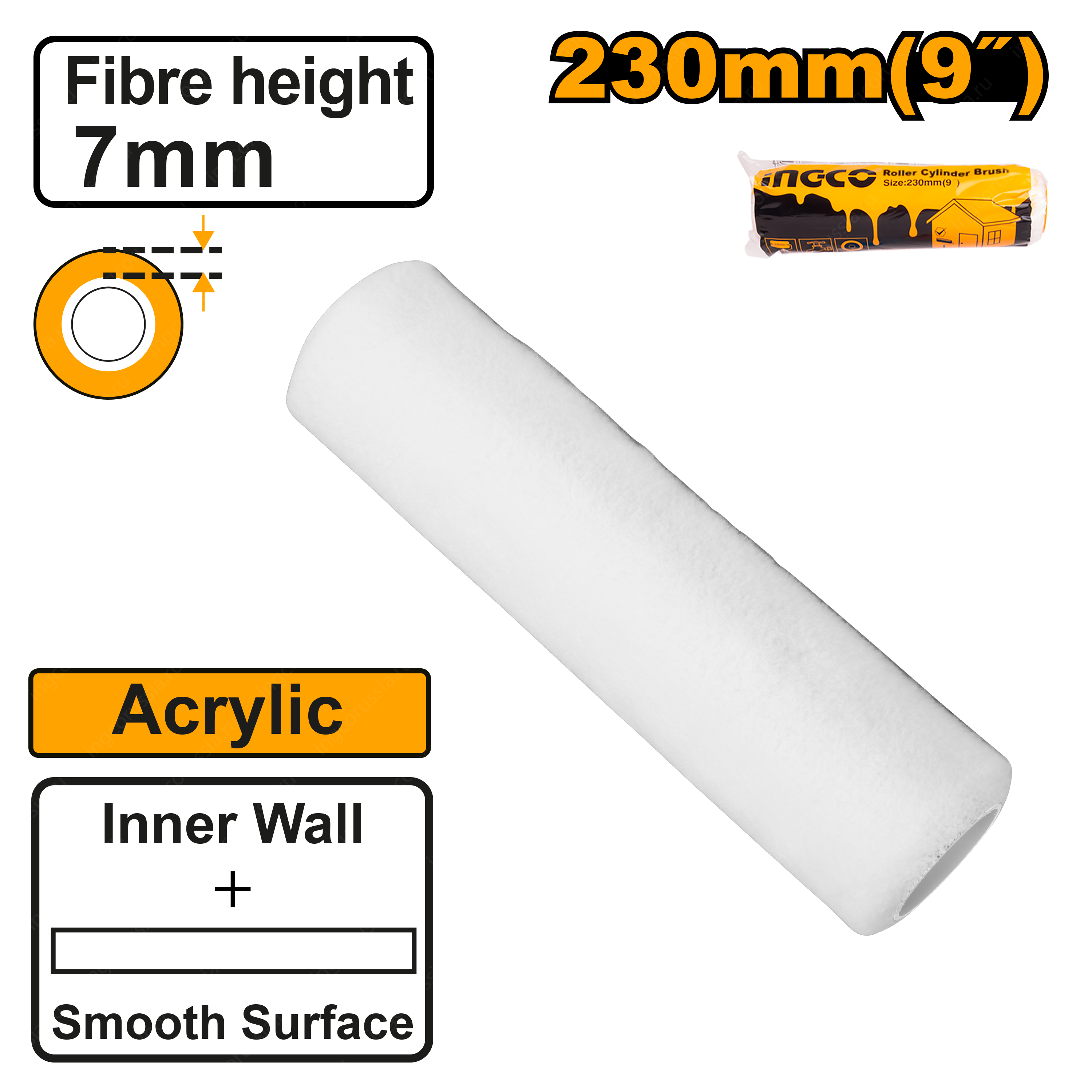 Сменный валик для малярного инструмента INGCO HRC0523007 из акрила. Высота ворса - 7 мм. Ширина валика - 230 мм.