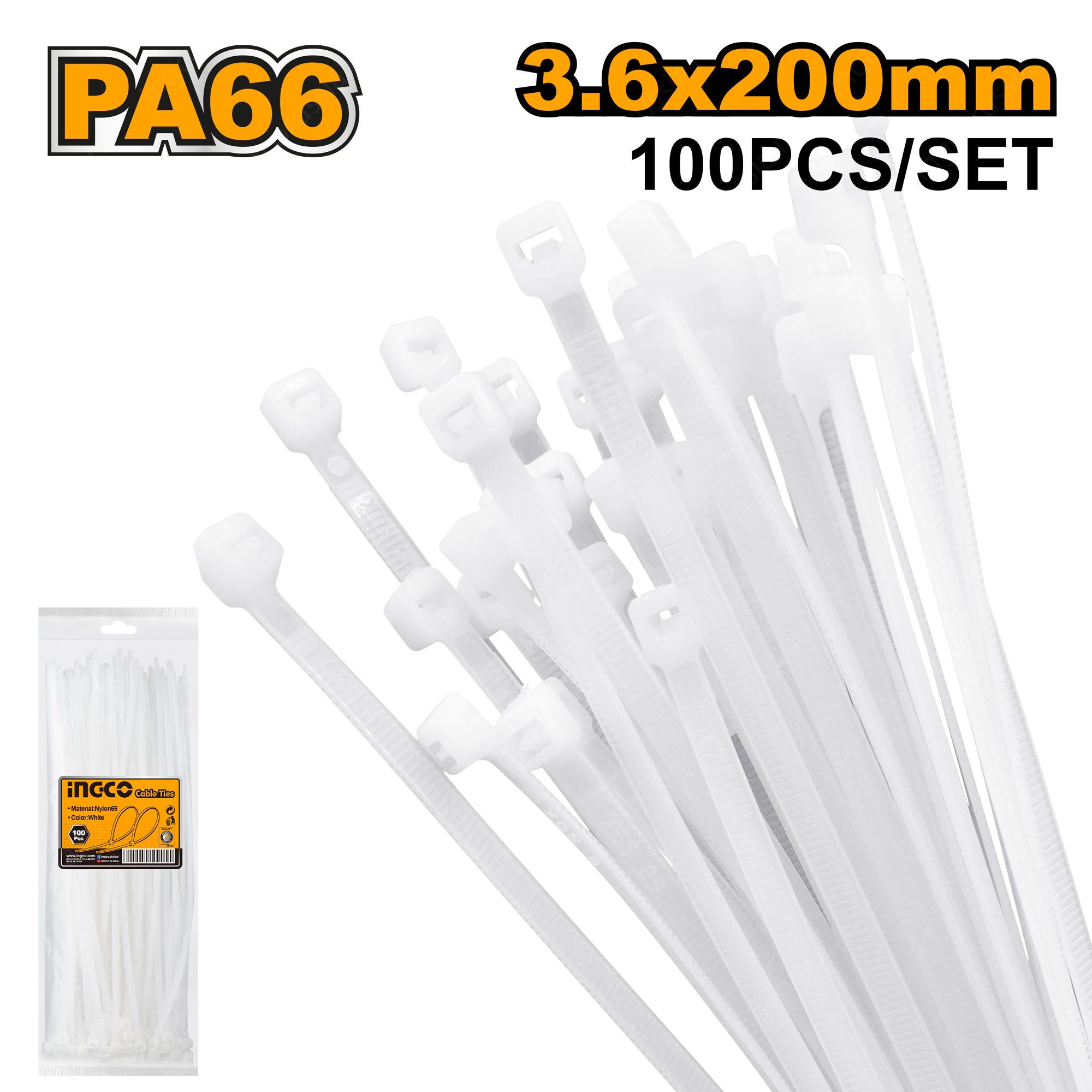 Кабельные стяжки 200 мм INGCO HCT2001. Материал - нейлон. Ширина: 3,6 мм. В наборе 100 штук.