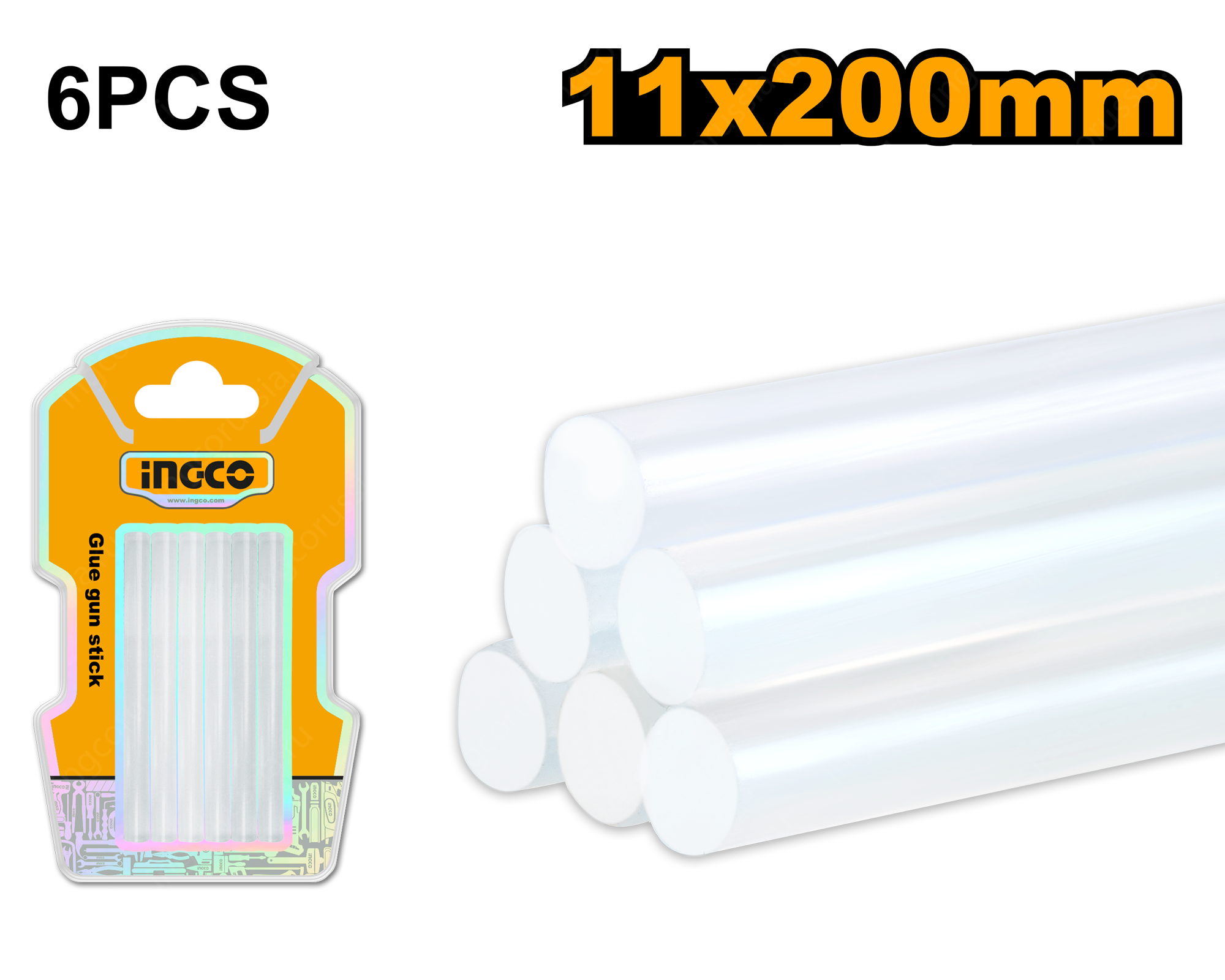 Клеевые стержни прозрачные для клеевого пистолета 6 шт, 11.2х200мм INGCO AKTGS2061 используются совместно с клеевыми пистолетами, являются универсальными и применяются для склеивания изделий из дерева, металла, пластика, ткани, кожи, стекла, керамики, бумаги, картона, резины.