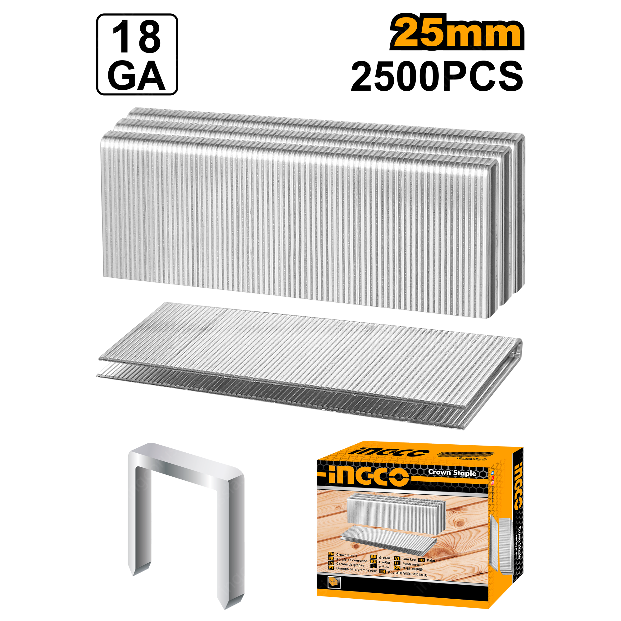 Скобы 18GA 1.25х1х5.7 мм для пневматического нейлера 35 мм INGCO AST18351 крепление деревянных и древесно-волокнистых панелей/сборка мебельных каркасов/обивка.