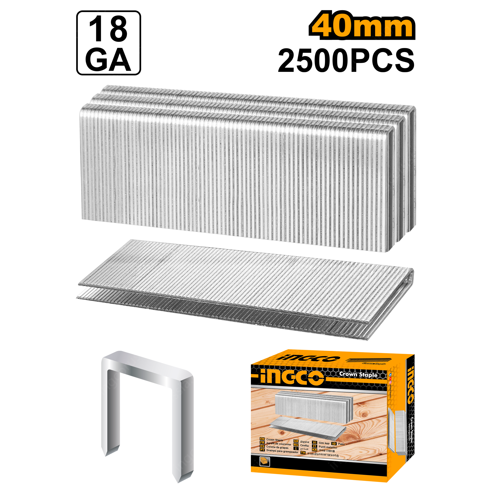 Скобы 18GA 1.25х1х5.7 мм для пневматического нейлера 40 мм INGCO AST18401 крепление деревянных и древесно-волокнистых панелей/сборка мебельных каркасов/обивка.