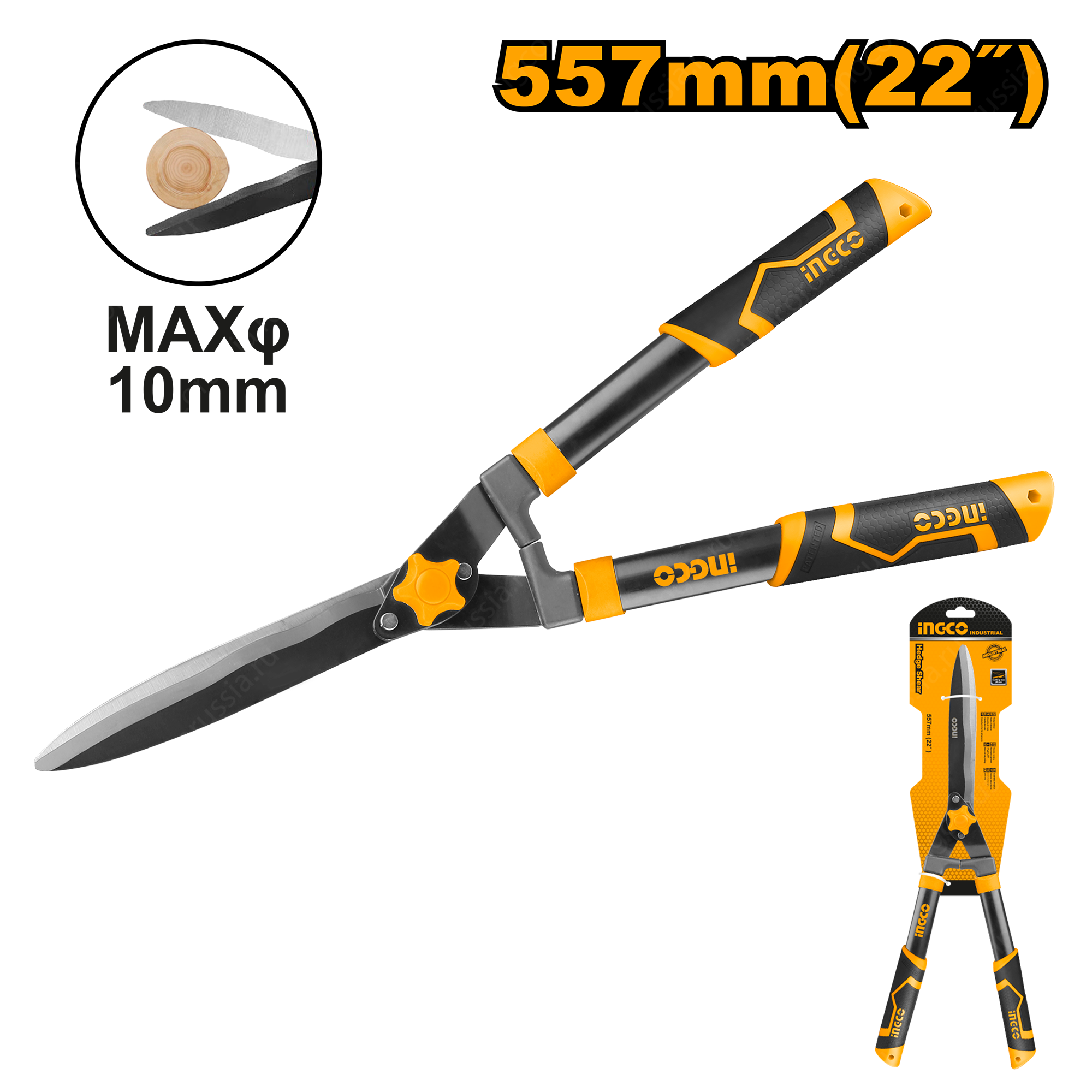 Кусторез с волнистыми лезвиями 557 мм. INGCO HHS6301 INDUSTRIAL очень удобный ручной садовый инвентарь для качественного ухода за дачными травянистыми растениями подрезки, подравнивания, фигурной стрижки изгородей, кустарников и декоративных деревьев.