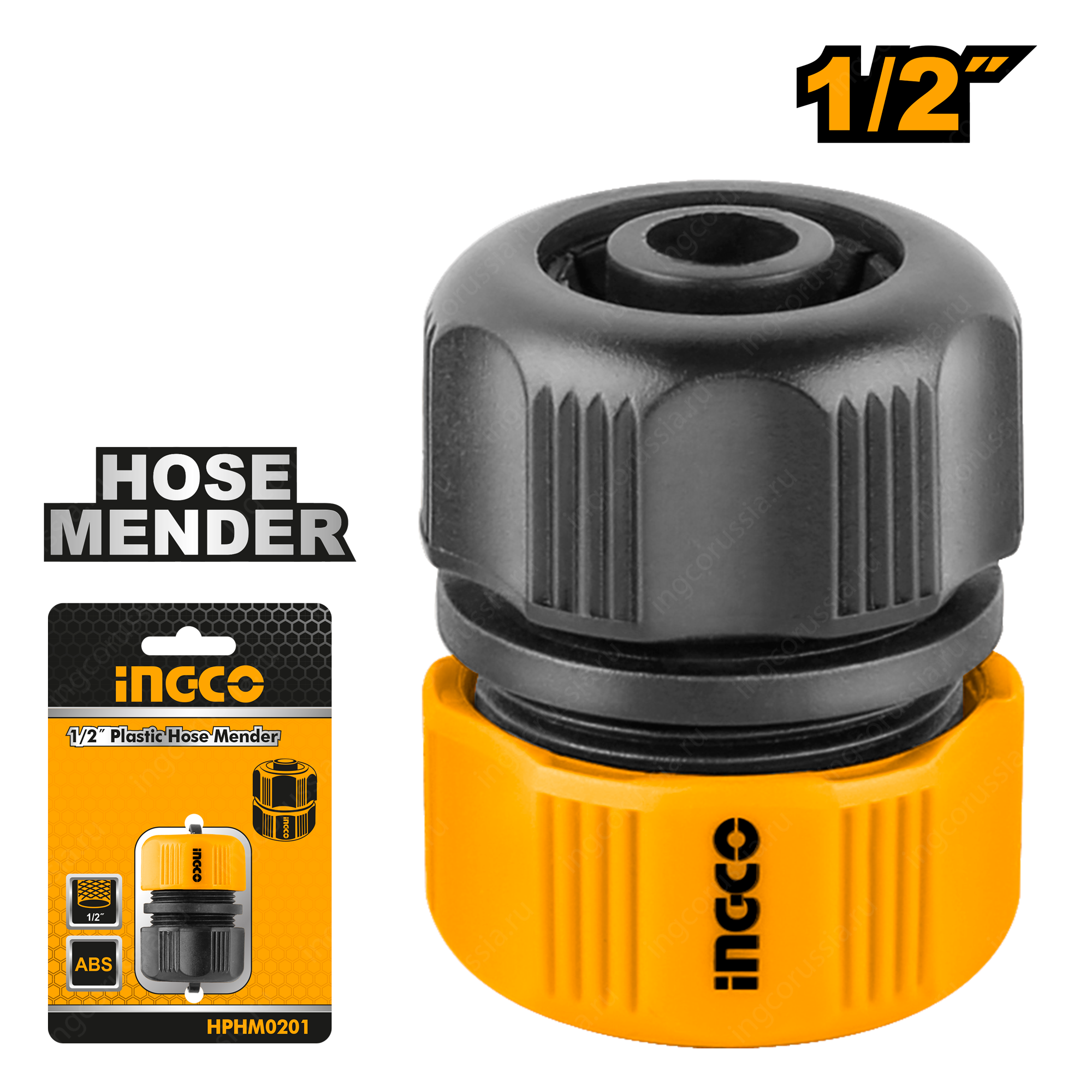 Муфта соединитель для поливочных шлангов 1/2'' INGCO HPHM0201 предназначена для соединения двух шлангов, для увеличения длины шланга или его ремонта.