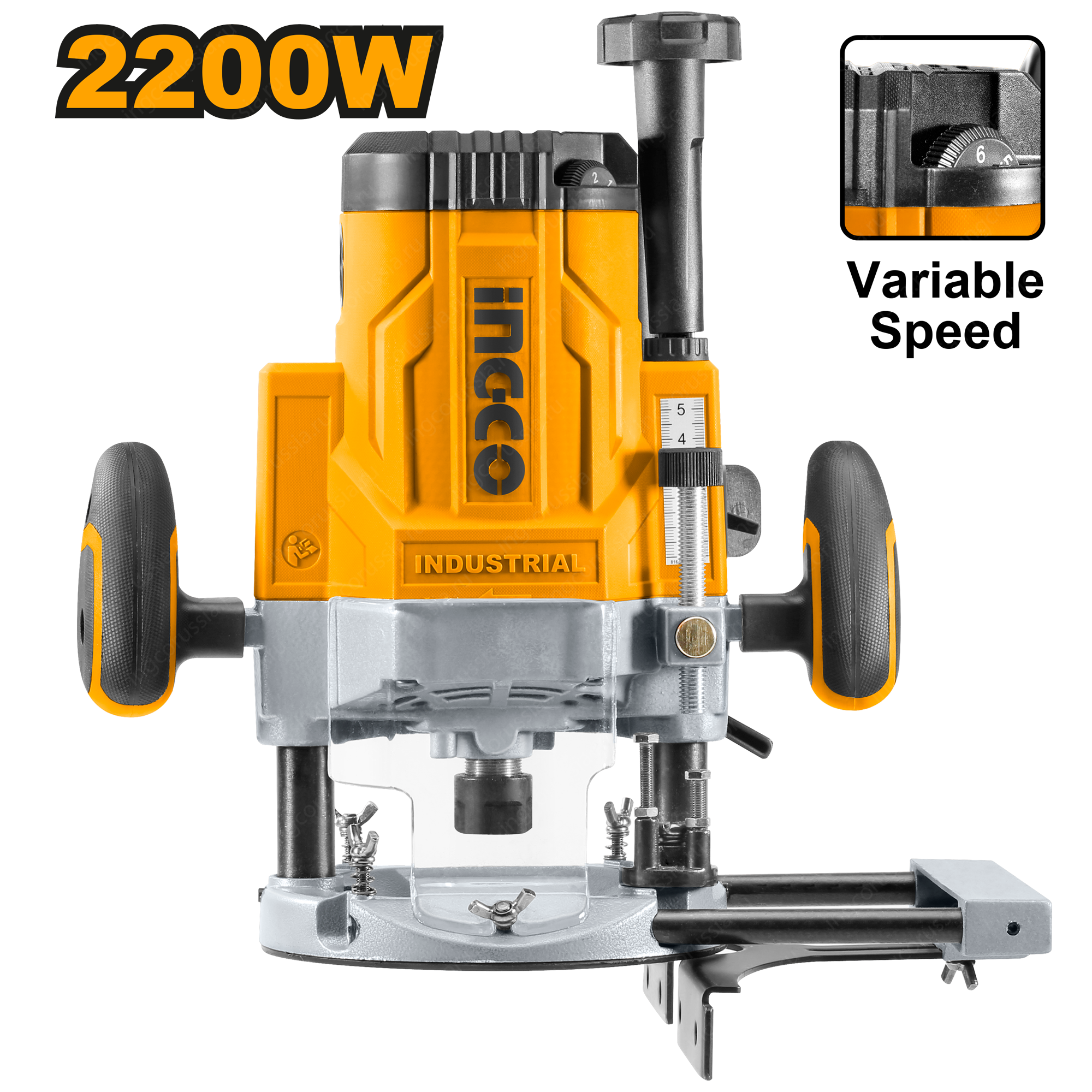 Представленная машина является самой мощной в данной серии. Боковые прорезиненные рукоятки обеспечивают надежный захват инструмента и снижение вибрации во время работы. Специальная шкала позволяет устанавливать необходимую глубину обработки заготовки. Прочная подошва с надежными фиксаторами. Инструмент можно настроить под конкретную задачу путем изменения числа оборотов.