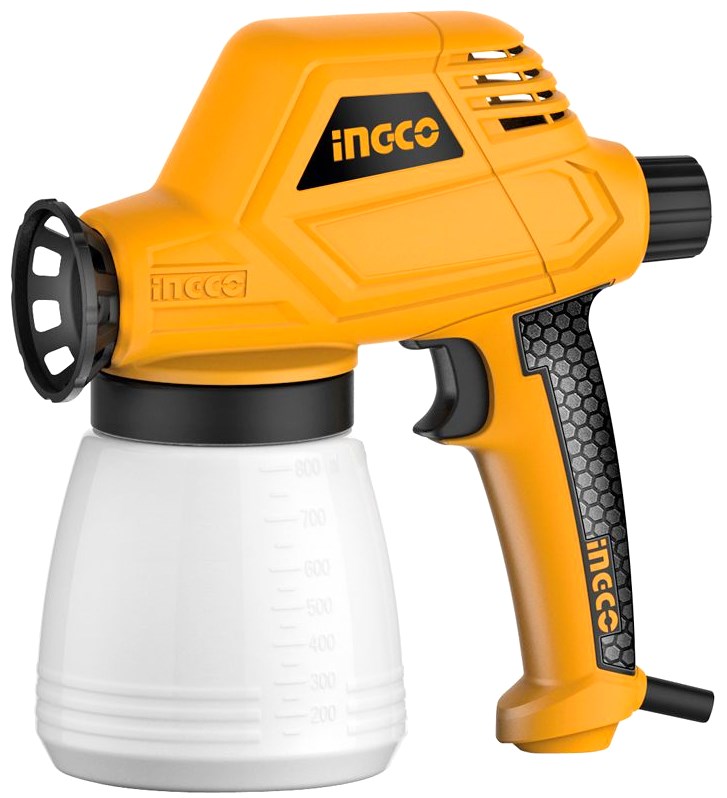 Краскопульт электрический INGCO SPG1308 применяется для быстрого и равномерного нанесения красящих составов на различные поверхности.