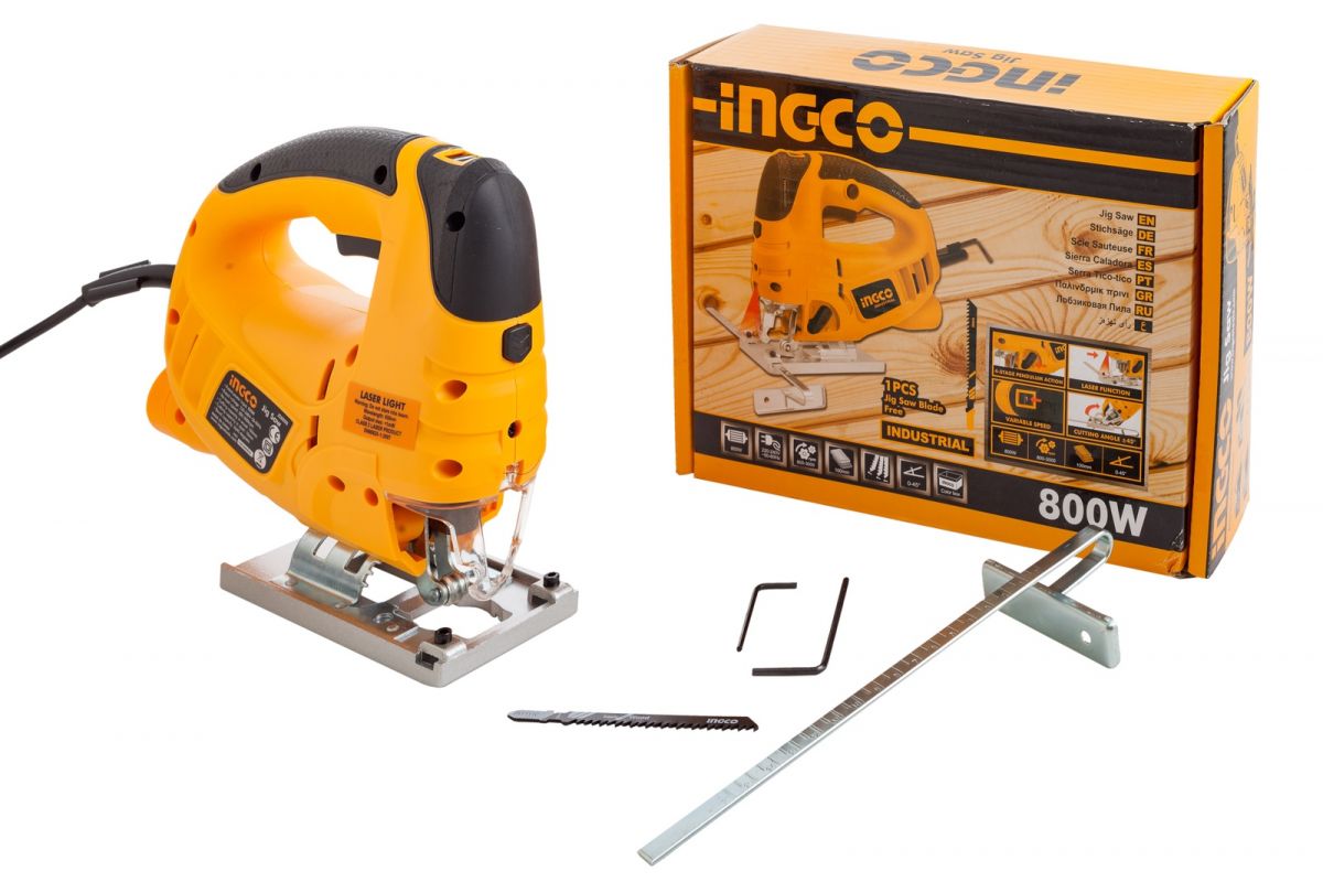 Электролобзик INGCO JS8008 INDUSTRIAL, 800Вт, 800-3000об/мин,, дер100\мет10, 4ПМХ, с регулируемым количеством ходов пилки. Лобзик имеет алюминиевую литую подошву, оснащён маятниковым ходом, регулировочным колесом для регулировки оборотов.