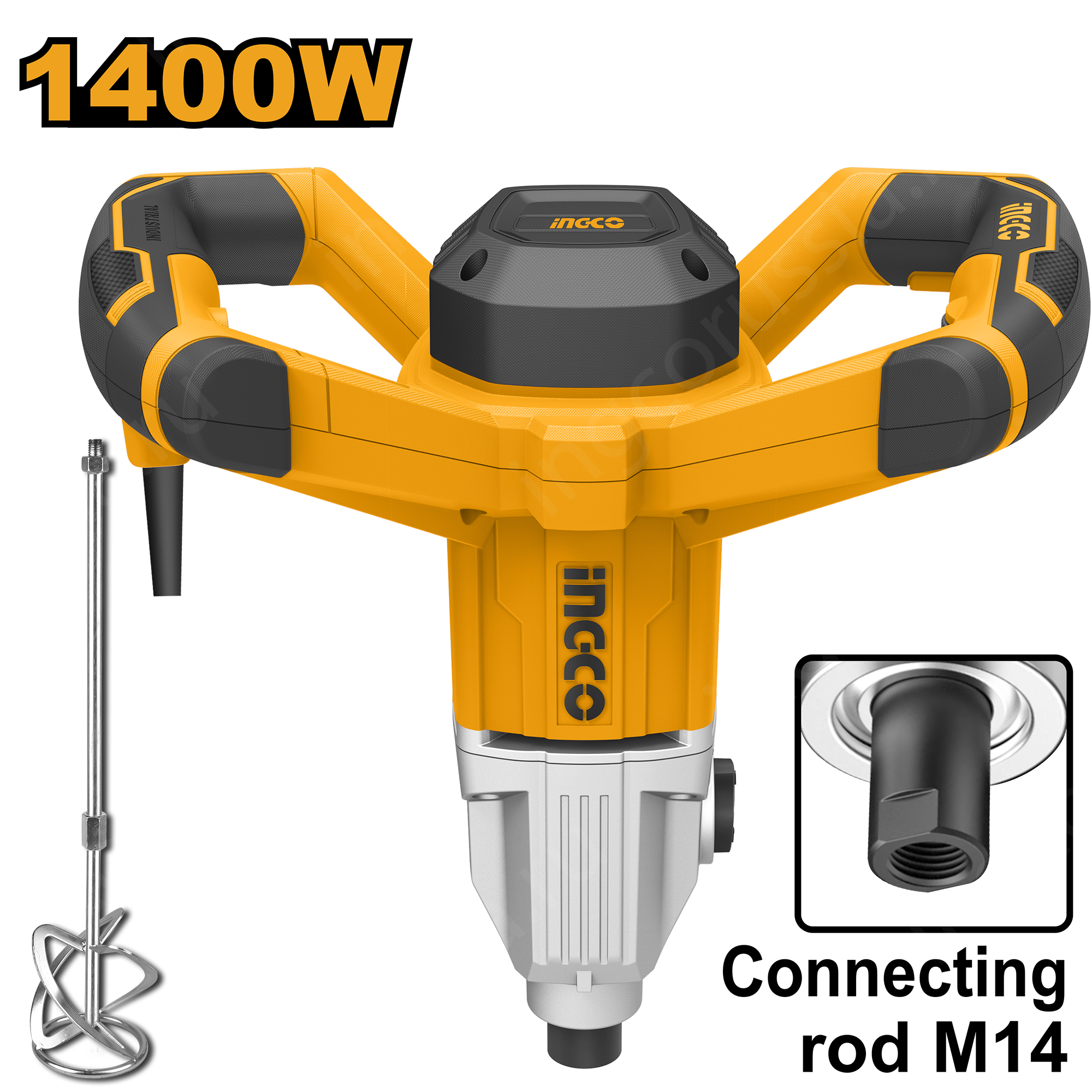 Строительный миксер INGCO MX214008 INDUSTRIAL применяется для перемешивания различных строительных составов, штукатурки, краски, клея и т.д.