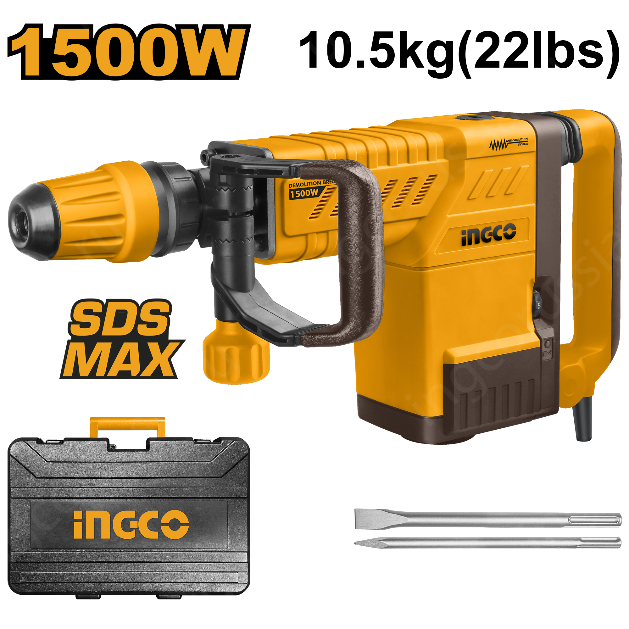 Отбойный молоток INGCO PDB15006 снабжен - Системой антивибрации - ANTI-VIBRATION SYSTEM