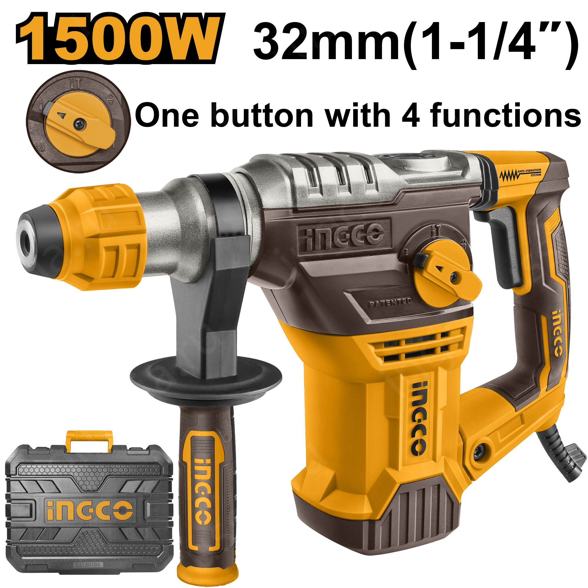 Перфоратор INGCO RH150028 снабжен - Системой антивибрации - ANTI-VIBRATION SYSTEM