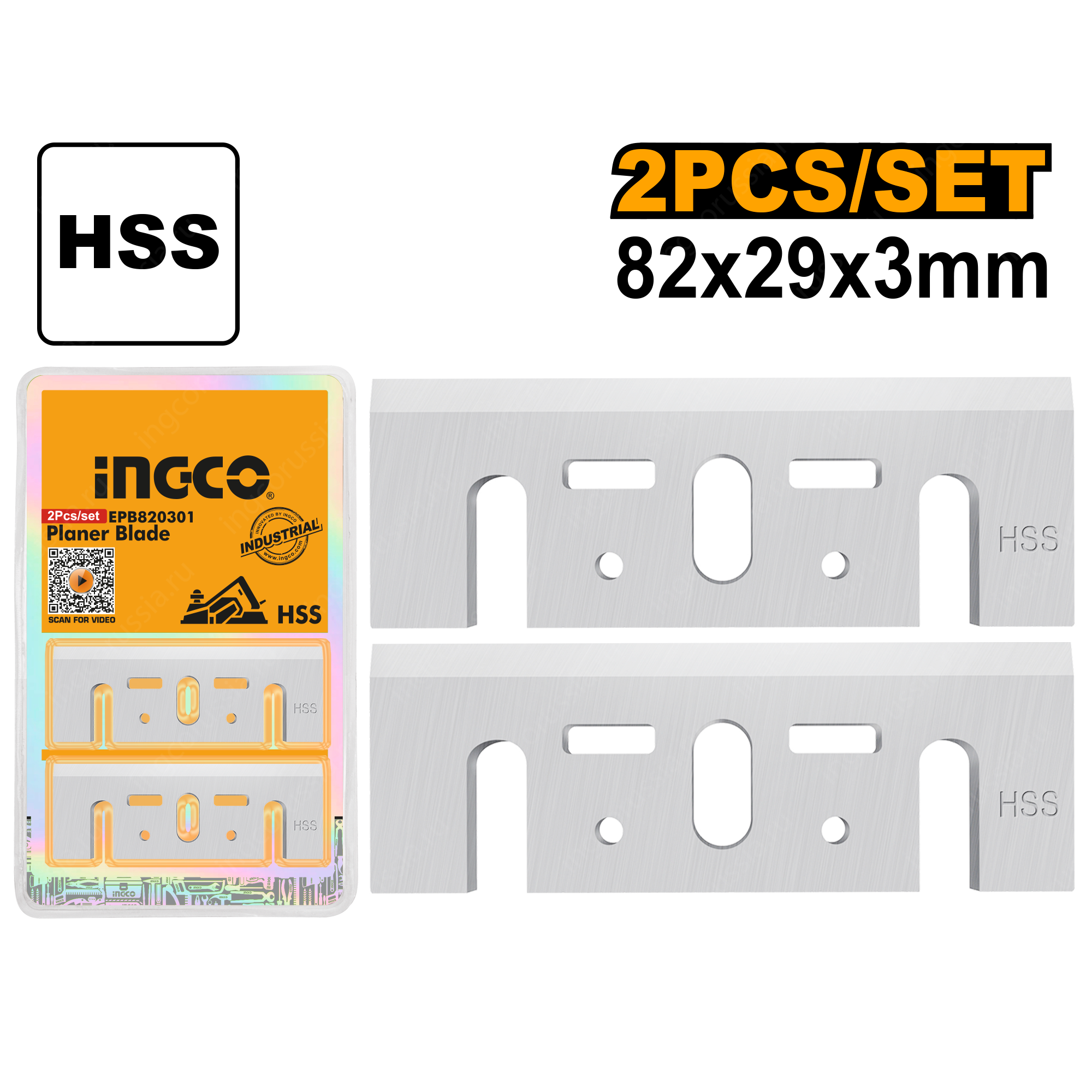 Ножи для электрорубанка INGCO EPB820301 INDUSTRIAL предназначены для обработки ДСП, ДВП, древесины, в том числе из хвойных пород.
