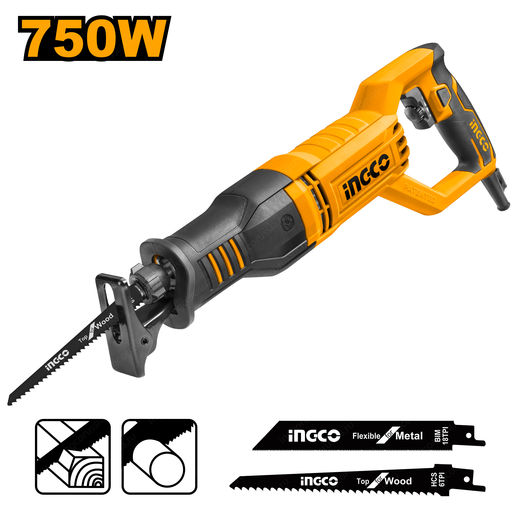 Сабельная пила INGCO RS8008 используется для реза дерева, металла, пластика, пенобетона, камня, а также для работ в саду.
