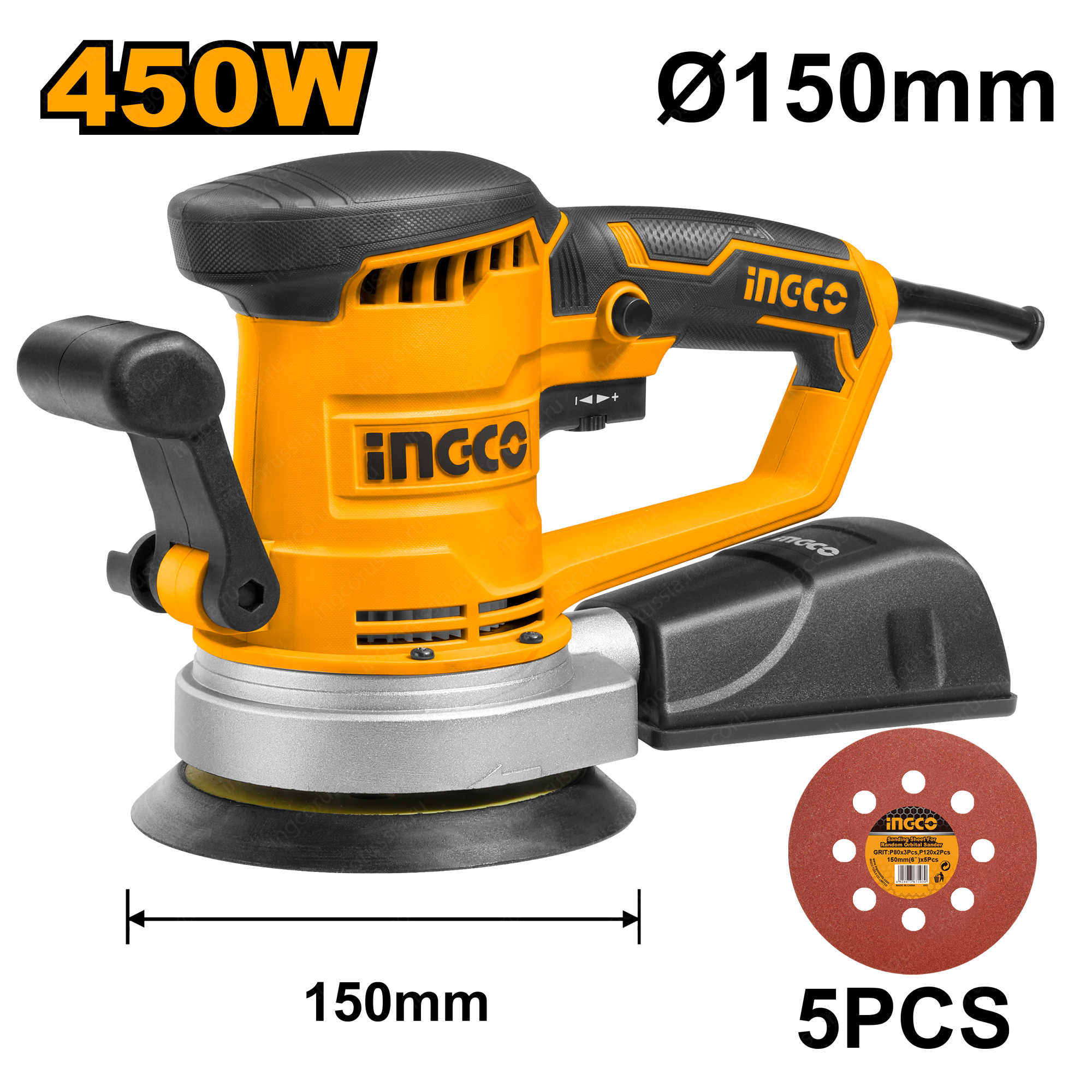 Диаметр шлифовального круга - 150 мм. Основание - липучка.