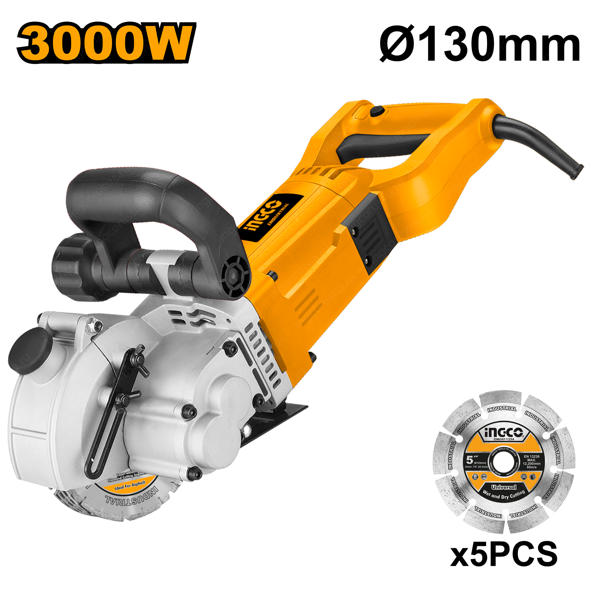 Штроборез 3000 Вт INGCO WLC30001 INDUSTRIAL предназначен для создания ровных борозд при прокладке трубопроводов или кабелей.
