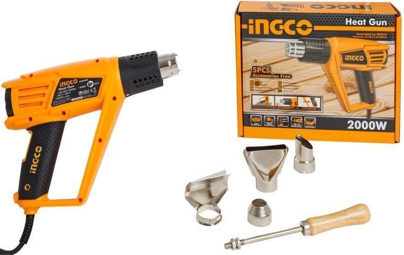 Фен технический INGCO HG20008 STANDARD применяется для нагрева поверхностей или термоусадочных трубок, удаления лако-красочных поверхностей и других материалов с различных поверхностей, пайки мягким припоем, пайки пластика, деформации плексигласа.