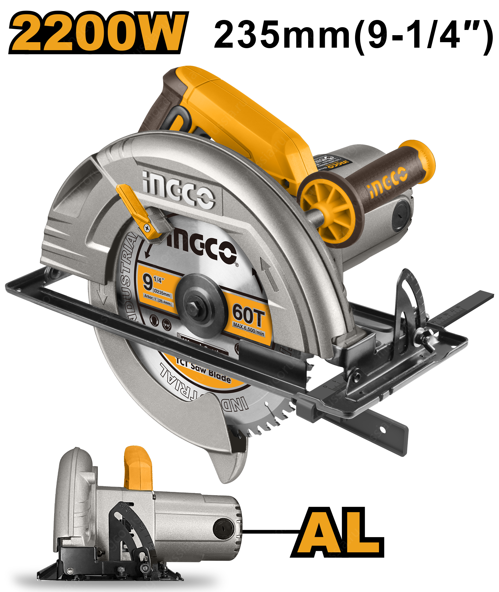 Пила циркулярная INGCO CS2358 INDUSTRIAL предназначена для точных и прямых распилов досок, мягкого металла, ламината, бруса, гипсокартона и др.